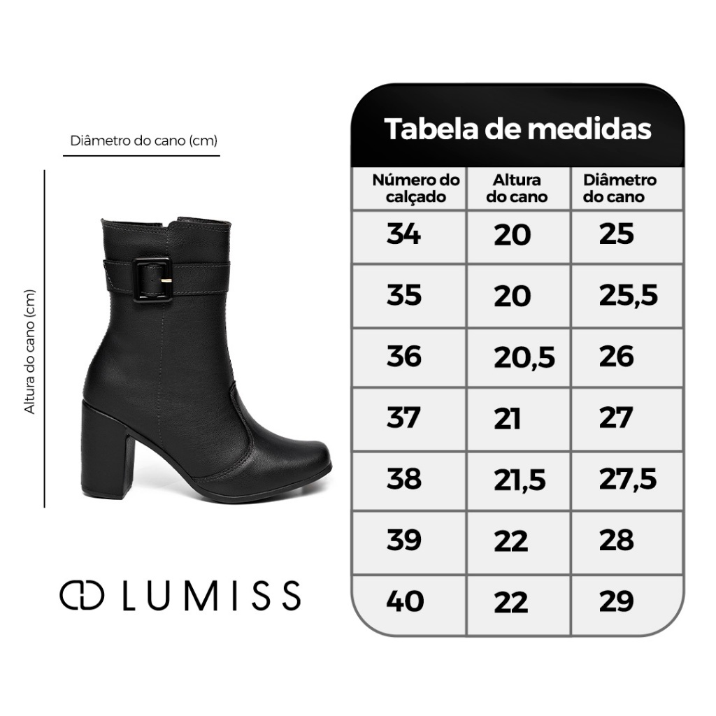 Bota Feminina Lumiss Confortável Cano Médio Bico Quadrado Salto Alto Bloco Fivela Blogueira Preto