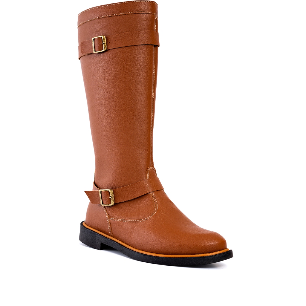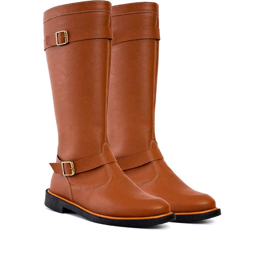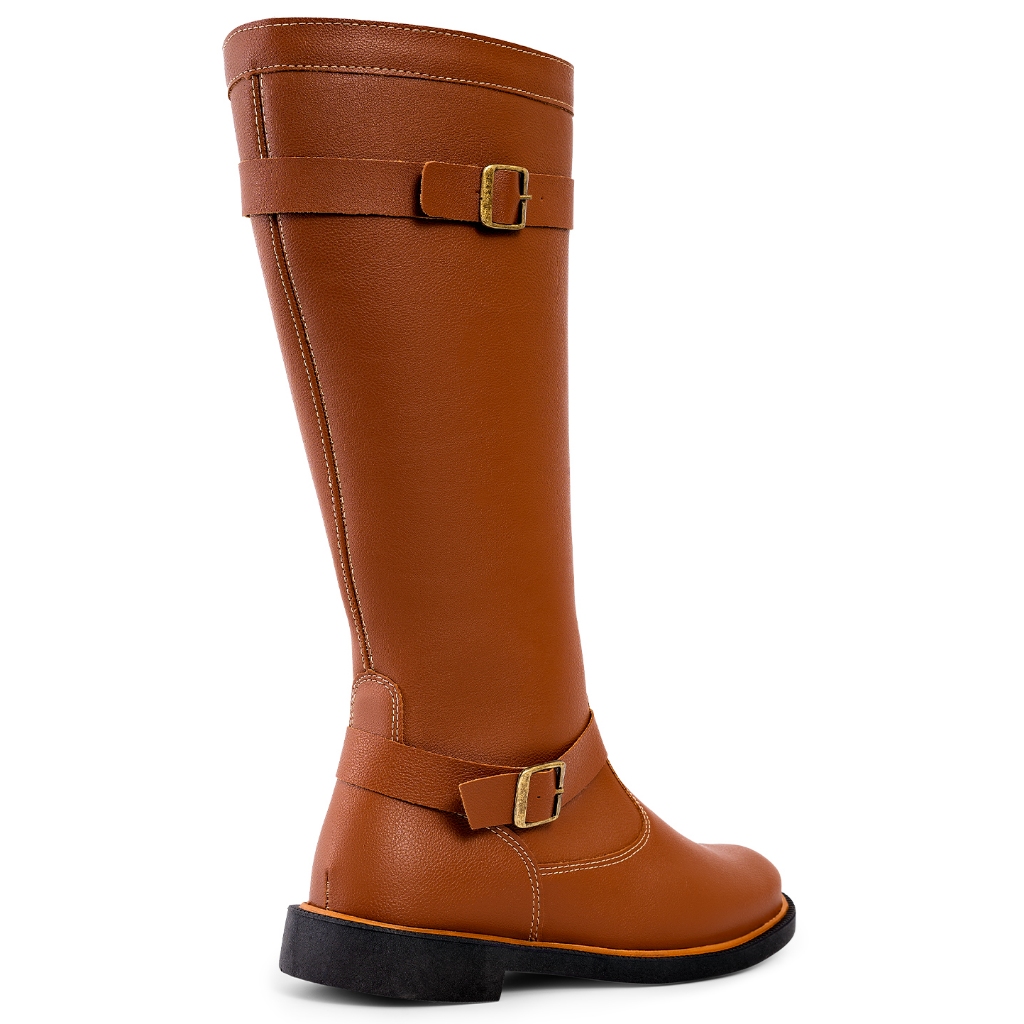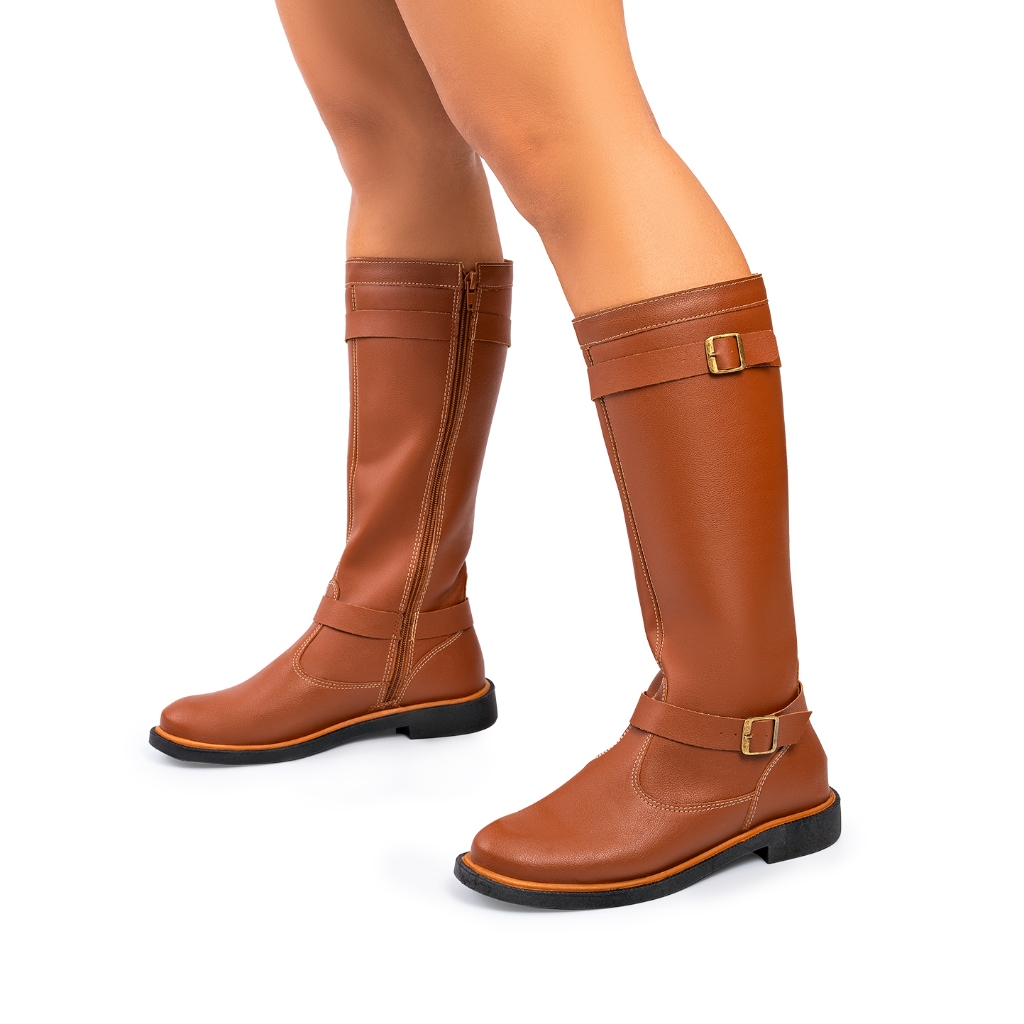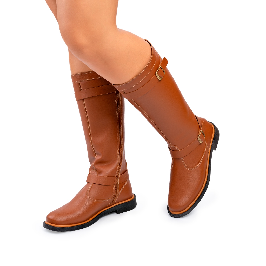Bota Feminina Lumiss Montaria Cano Longo Salto Baixo Marrom Caramelo
