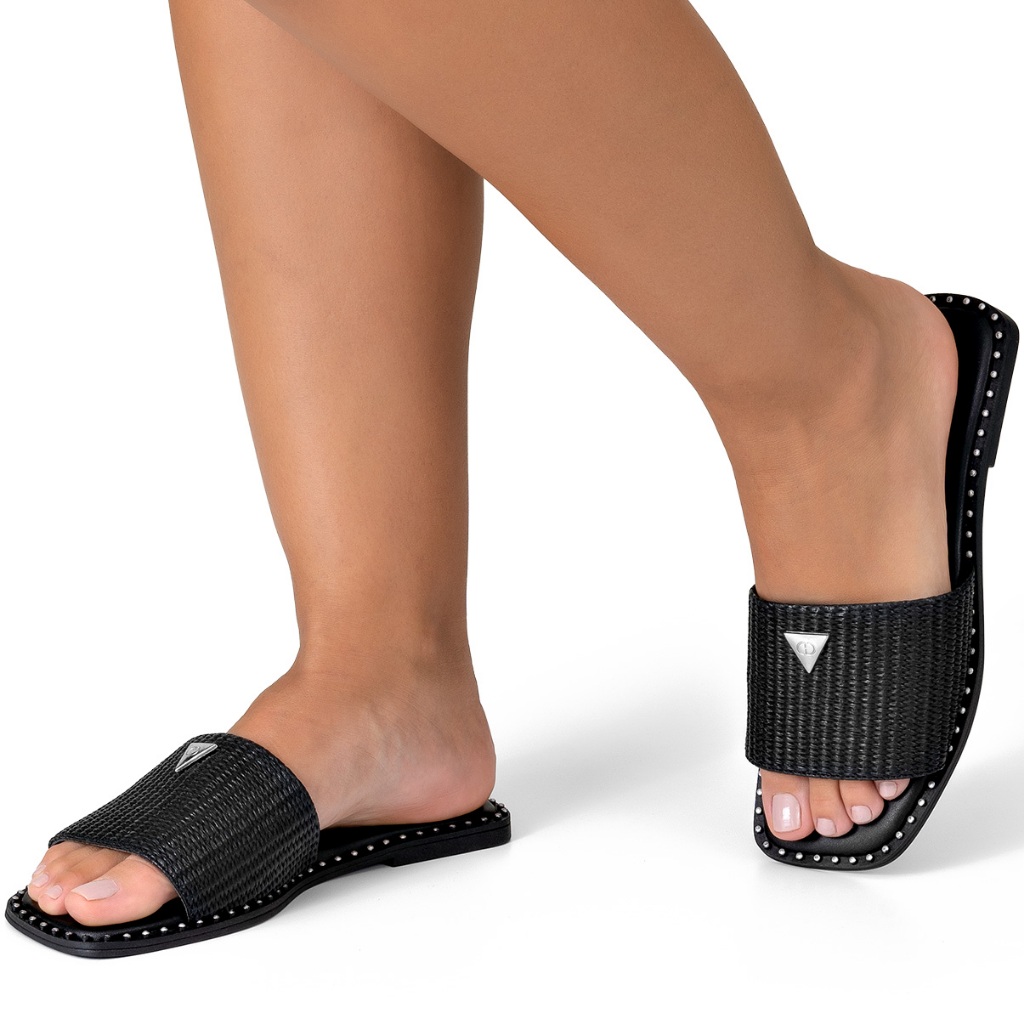 Sandália Feminina Rasteira Lumiss Bico Quadrado Confortável Juta Preto