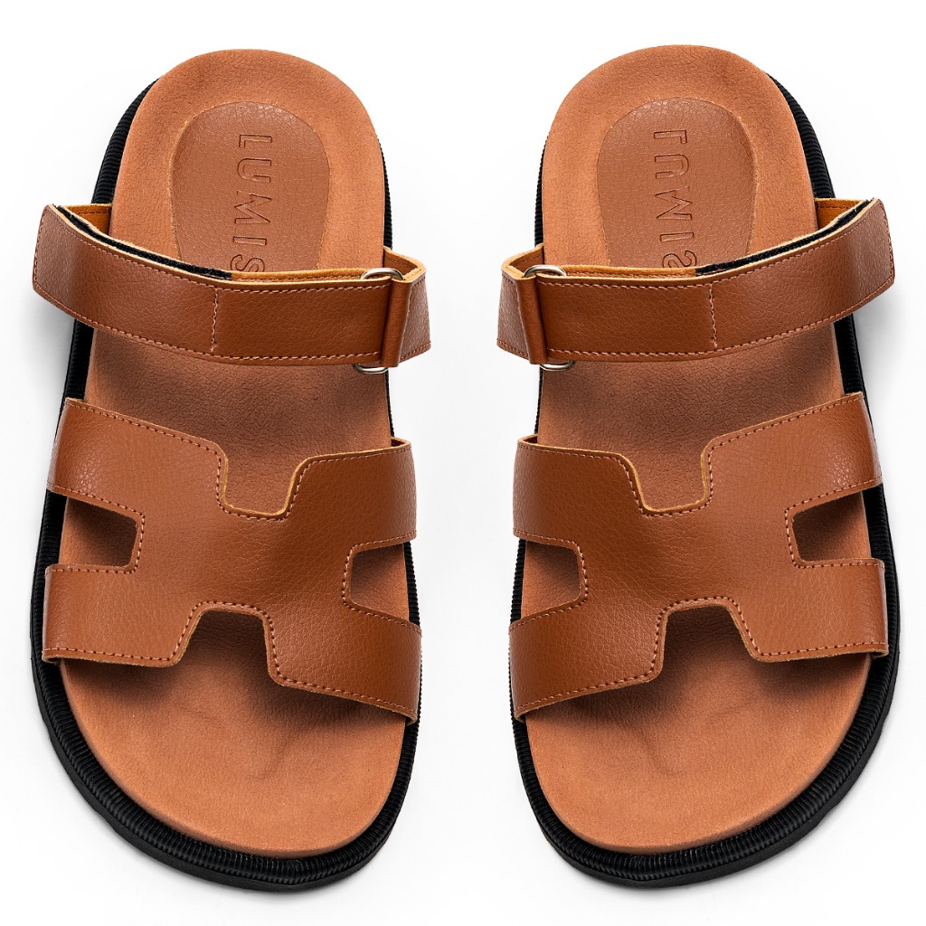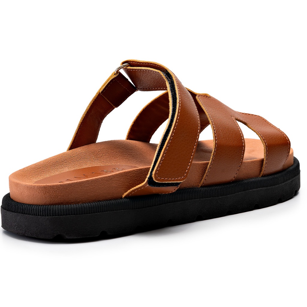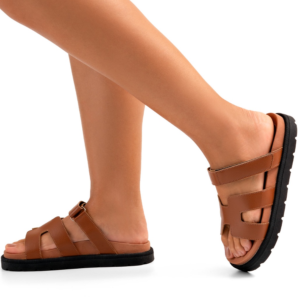 Sandália Papete Feminina Lumiss Blogueira Velcro Ajustável Confortável Caramelo
