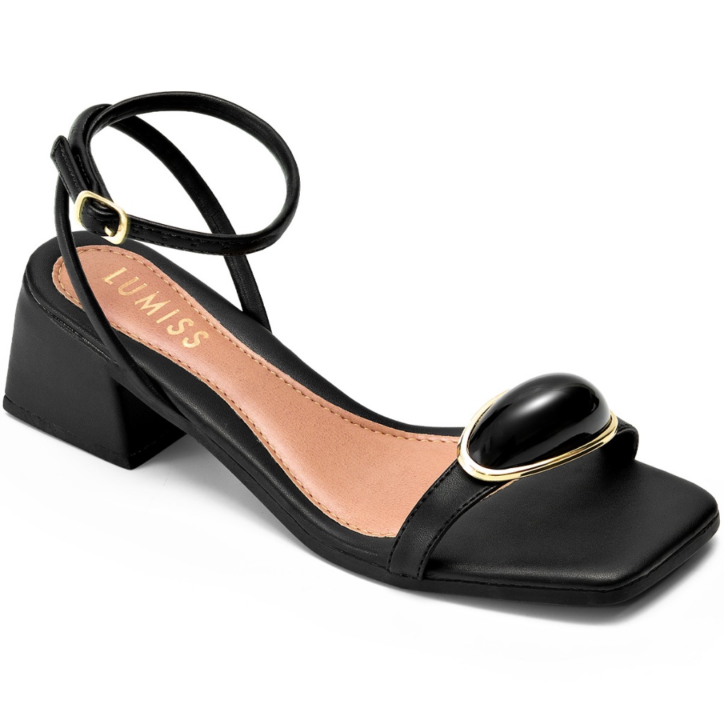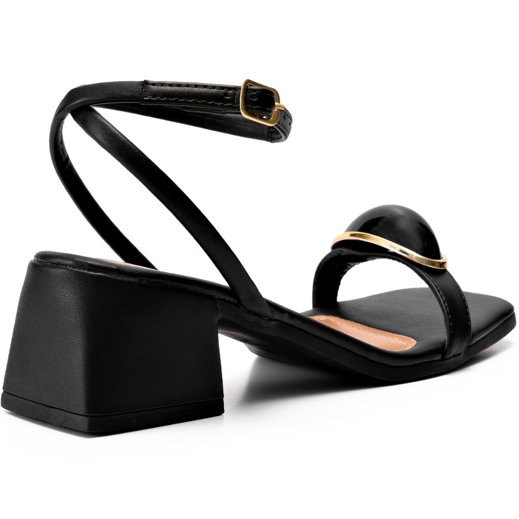 Sandália Feminina Lumiss Confortável Salto Baixo Bloco Enfeite Metalizado Blogueira Preto