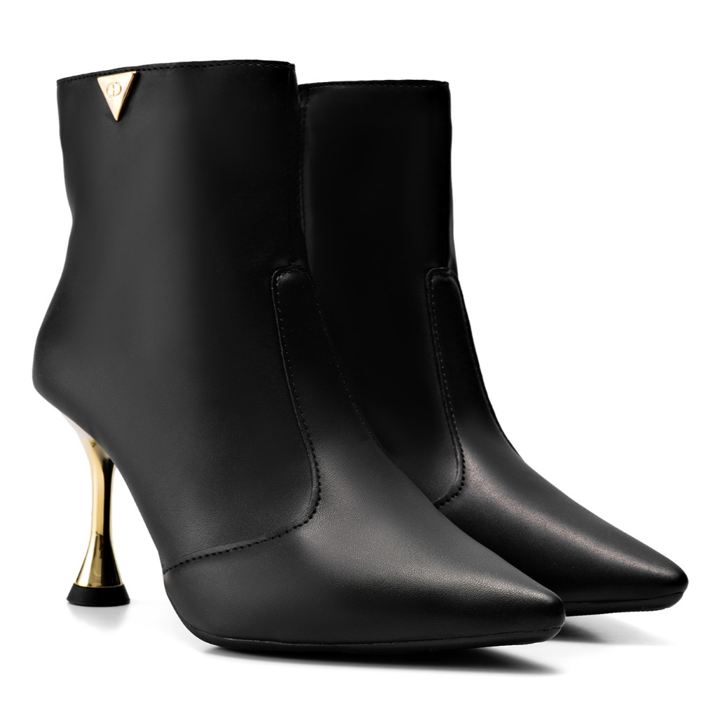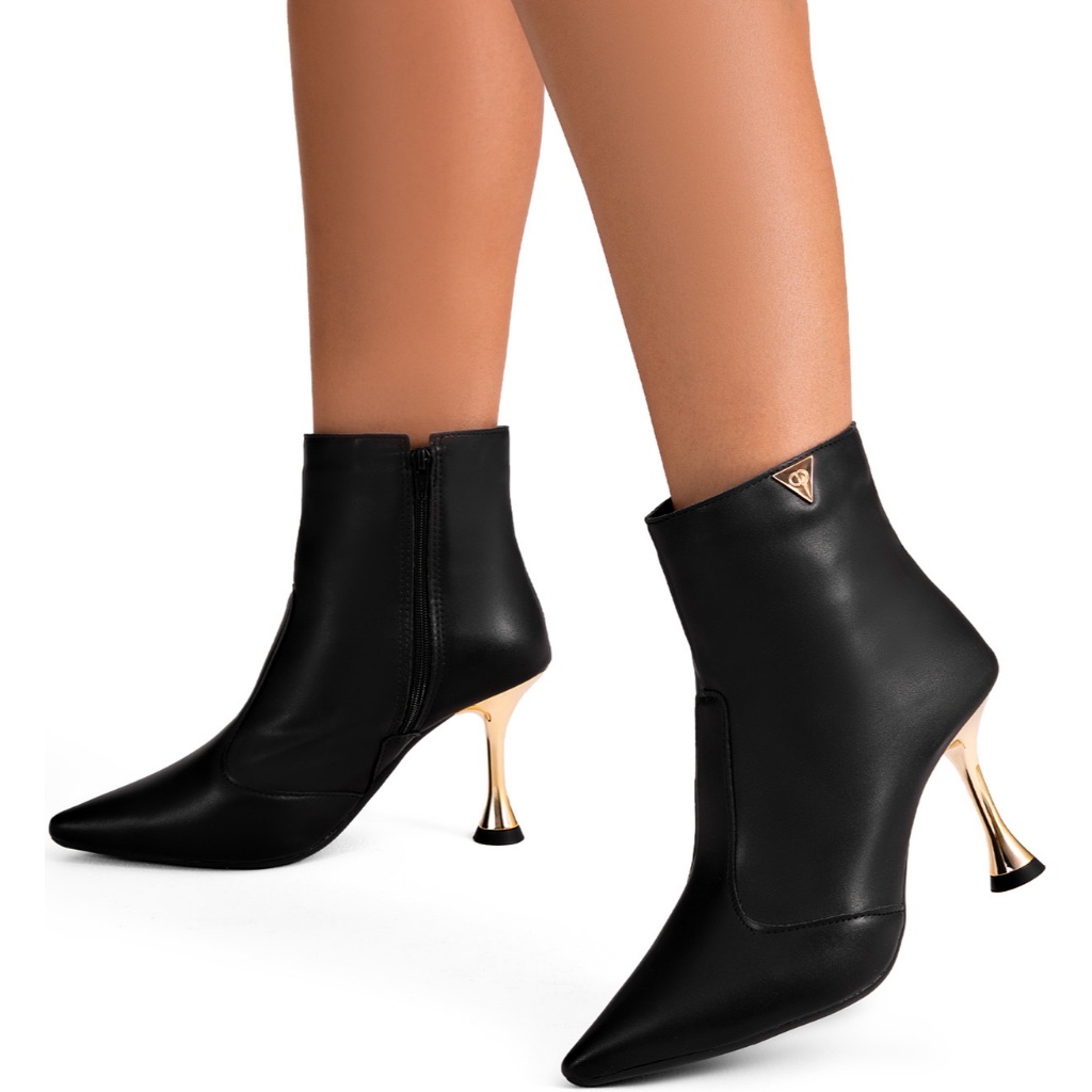 Bota Feminina Lumiss Bico Fino Salto Alto Fino Cano Curto Preto