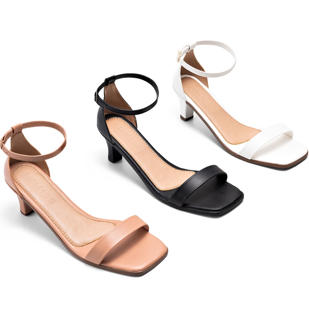 Sandália Feminina Lumiss Salto Baixo Fino Confortável Clássica Bico Quadrado Preto