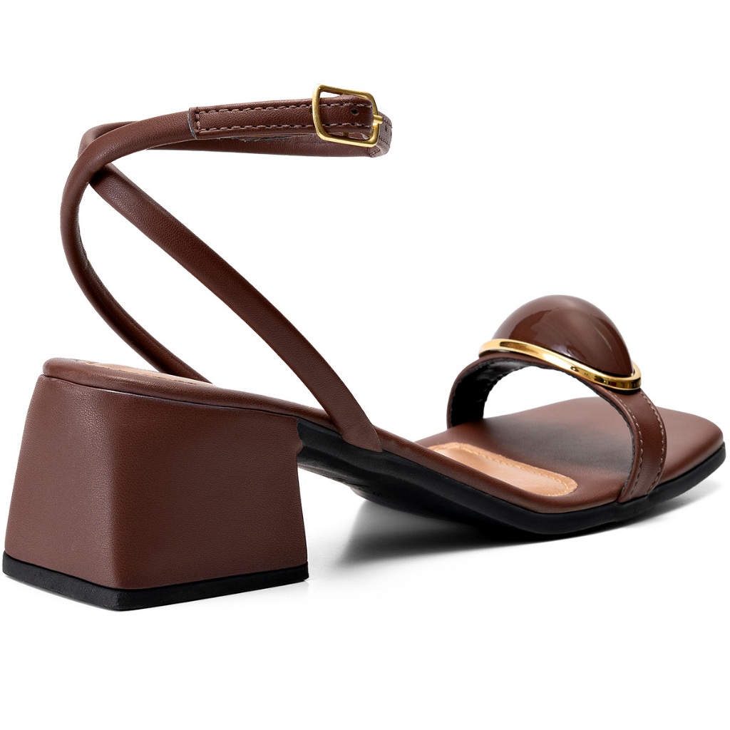Sandália Feminina Lumiss Confortável Salto Baixo Bloco Enfeite Metalizado Blogueira Marrom
