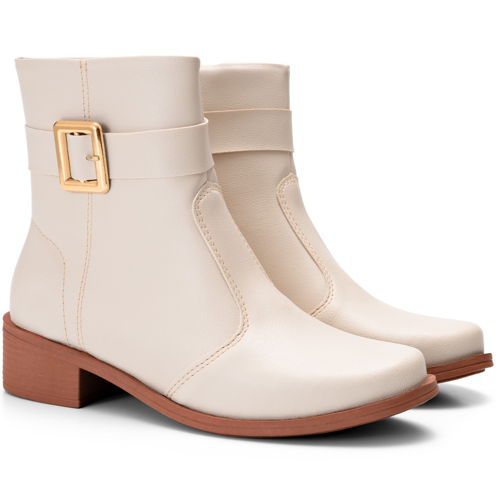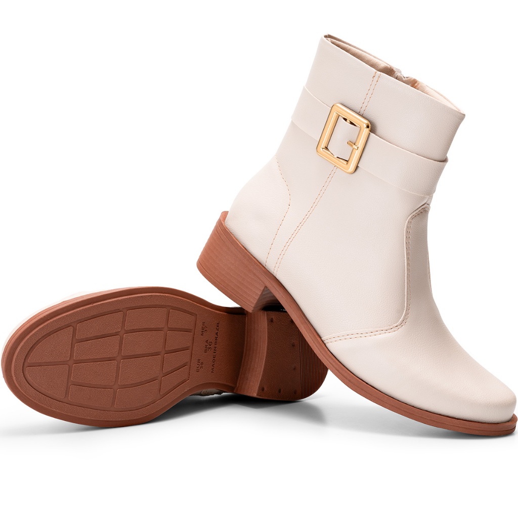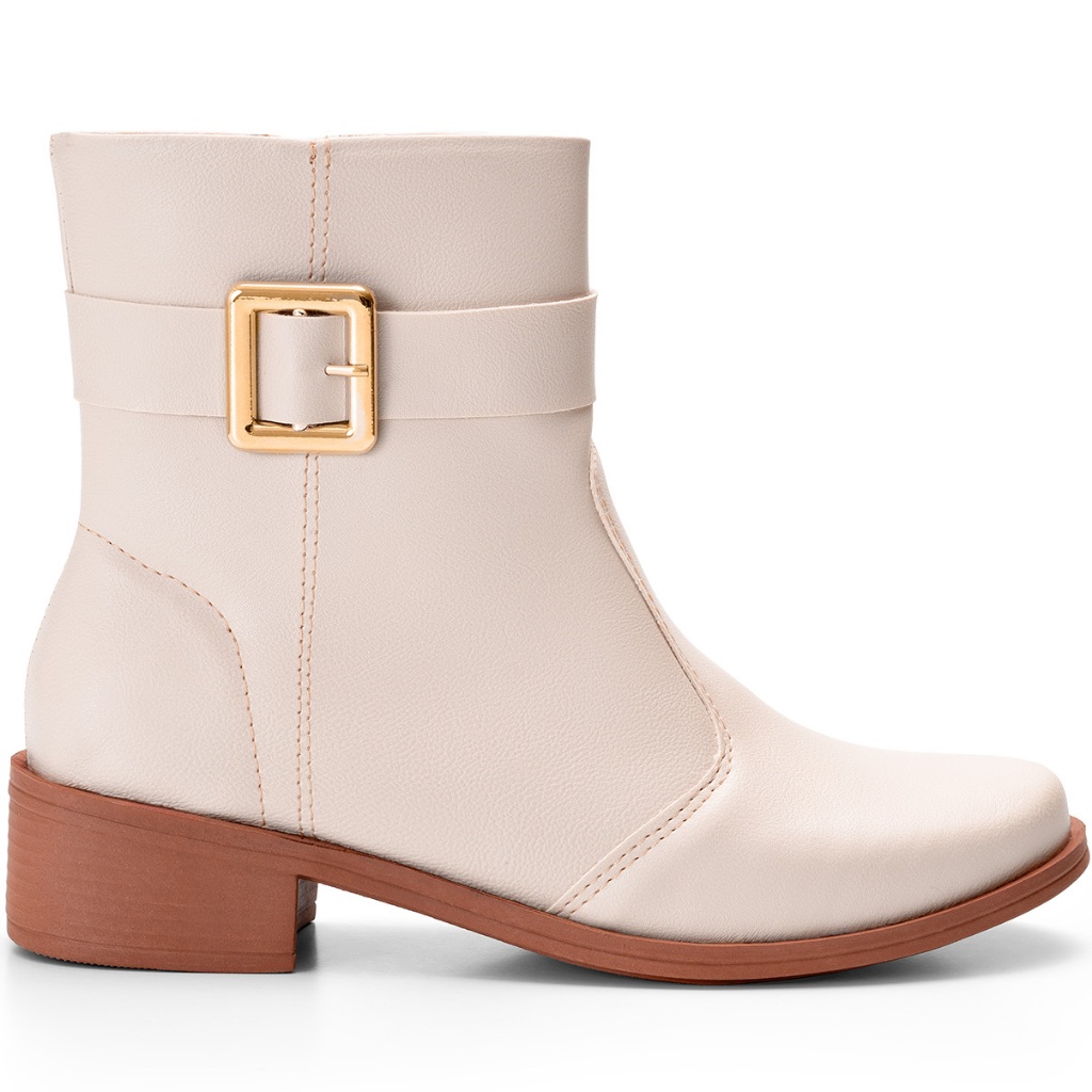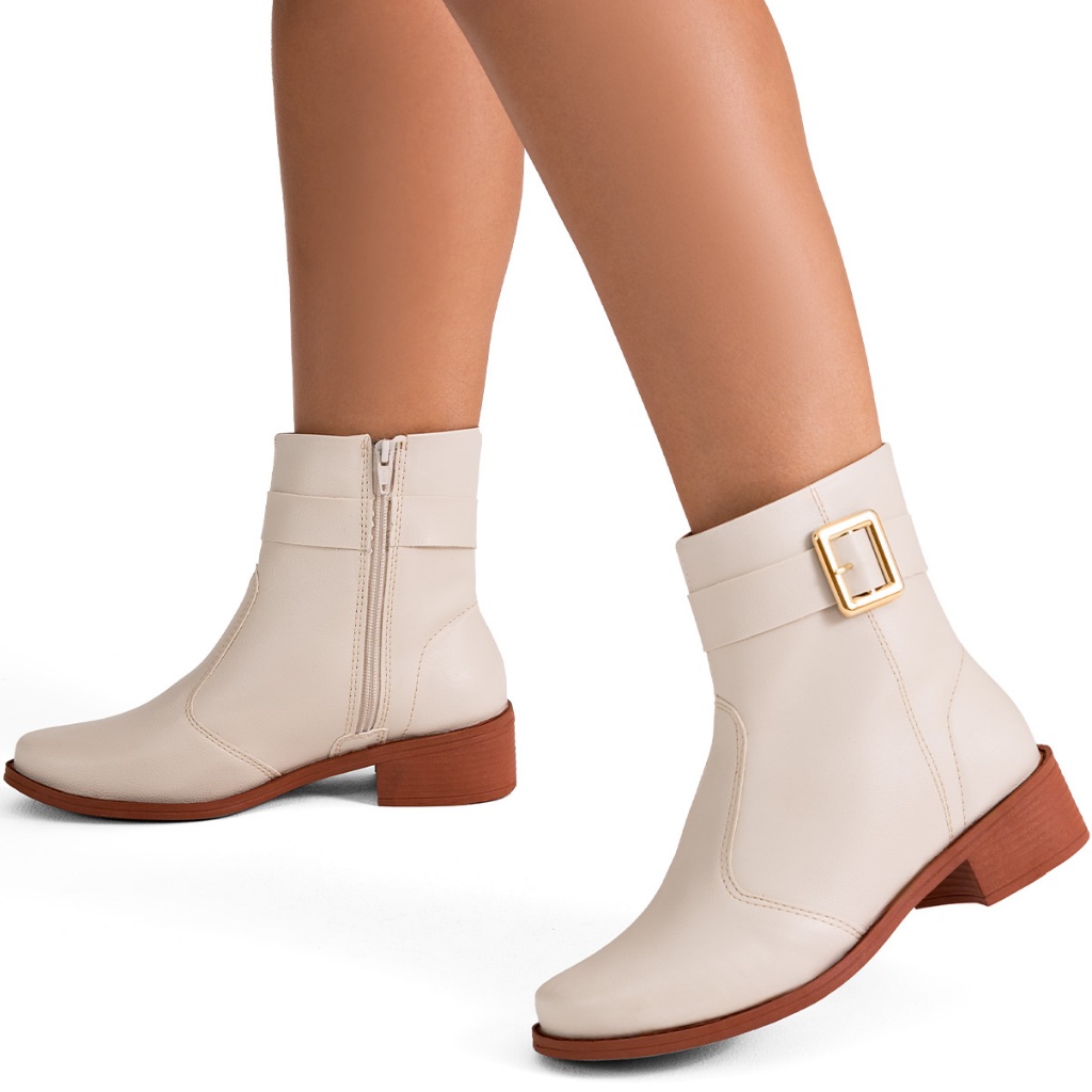 Bota Feminina Lumiss Cano Baixo Montaria Rasteira Fivela Off White