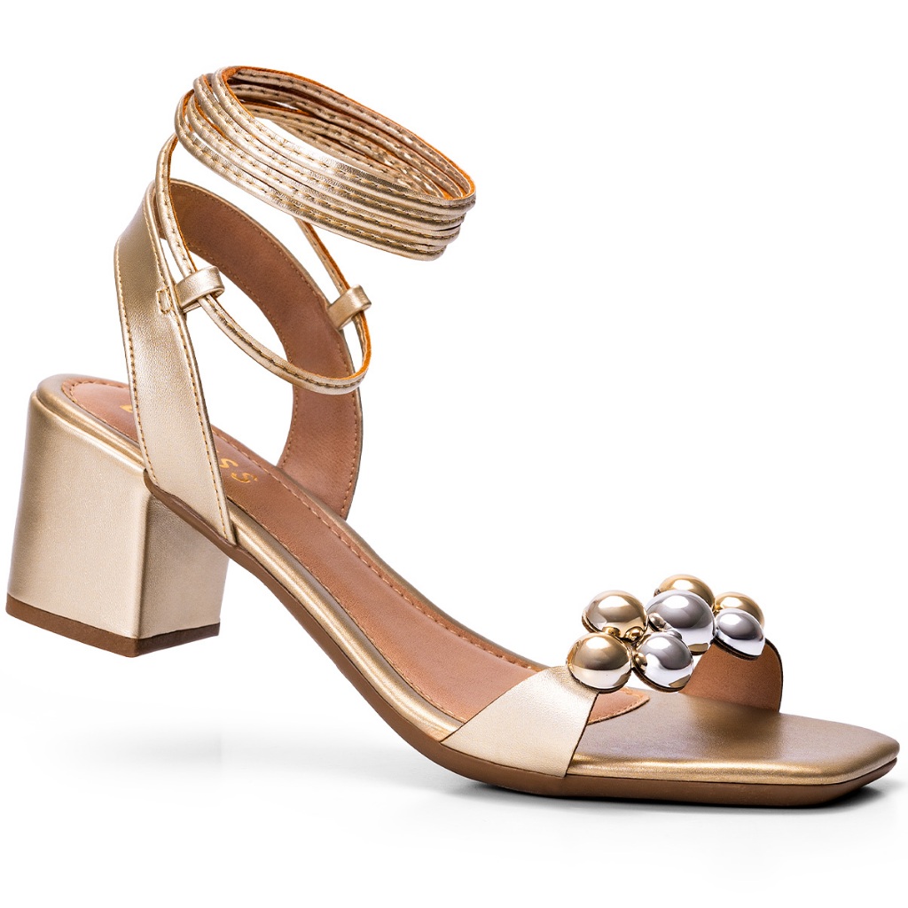 Sandália Feminina Lumiss Salto Baixo Bloco Confortável Amarração Enfeite