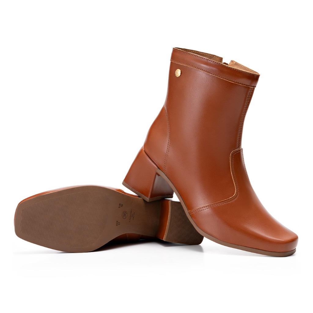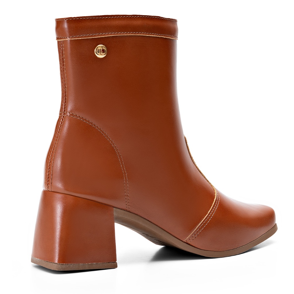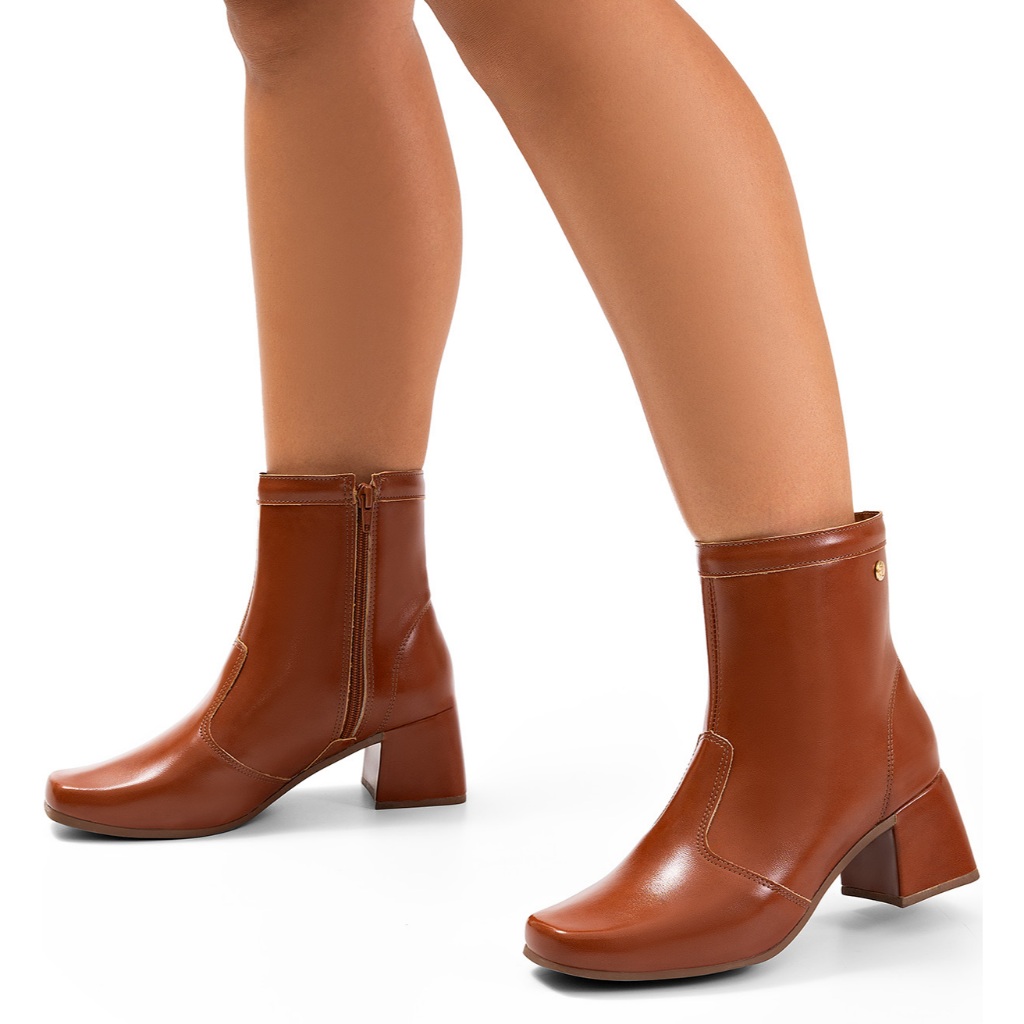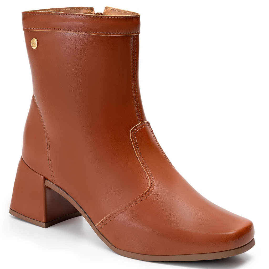 Bota Feminina Lumiss Bico Quadrado Salto Bloco Baixo Cano Curto Caramelo