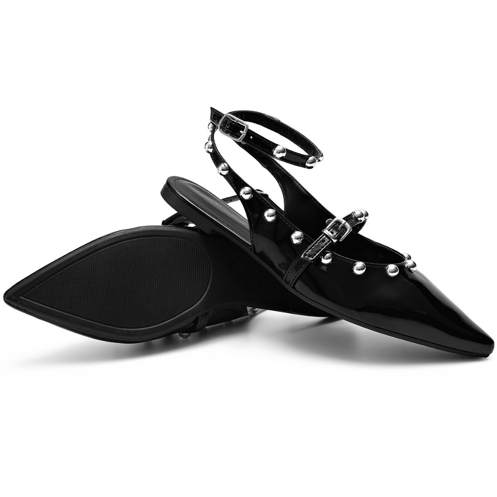 Sapatilha Feminina Lumiss Slingback Bico Fino Tachas Confortável Verniz Preto