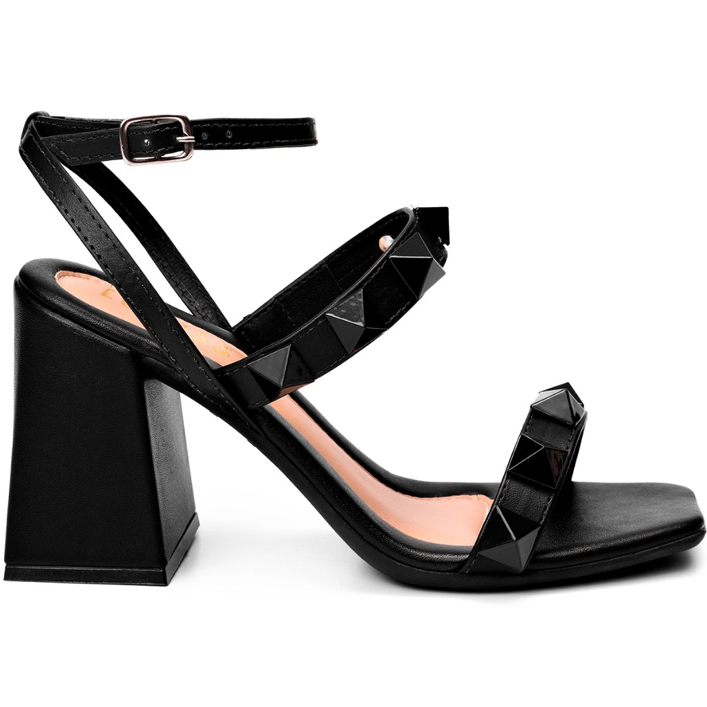 Sandália Feminina Lumiss Tacha Spike Pirâmide Salto Alto Bloco Confortável Preto