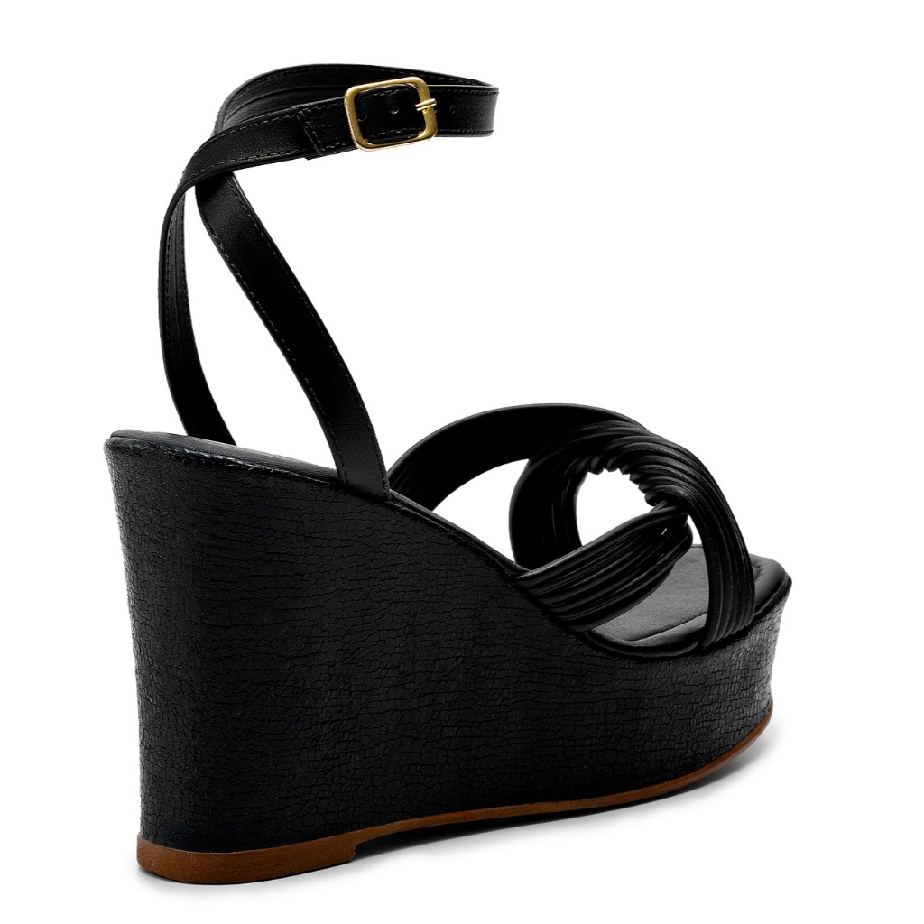 Sandália Feminina Lumiss Blogueira Tiras Nó Anabela Plataforma Confortável Preto