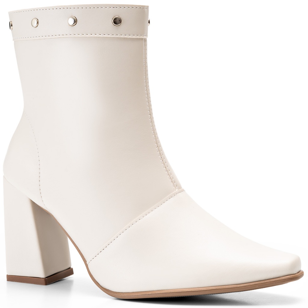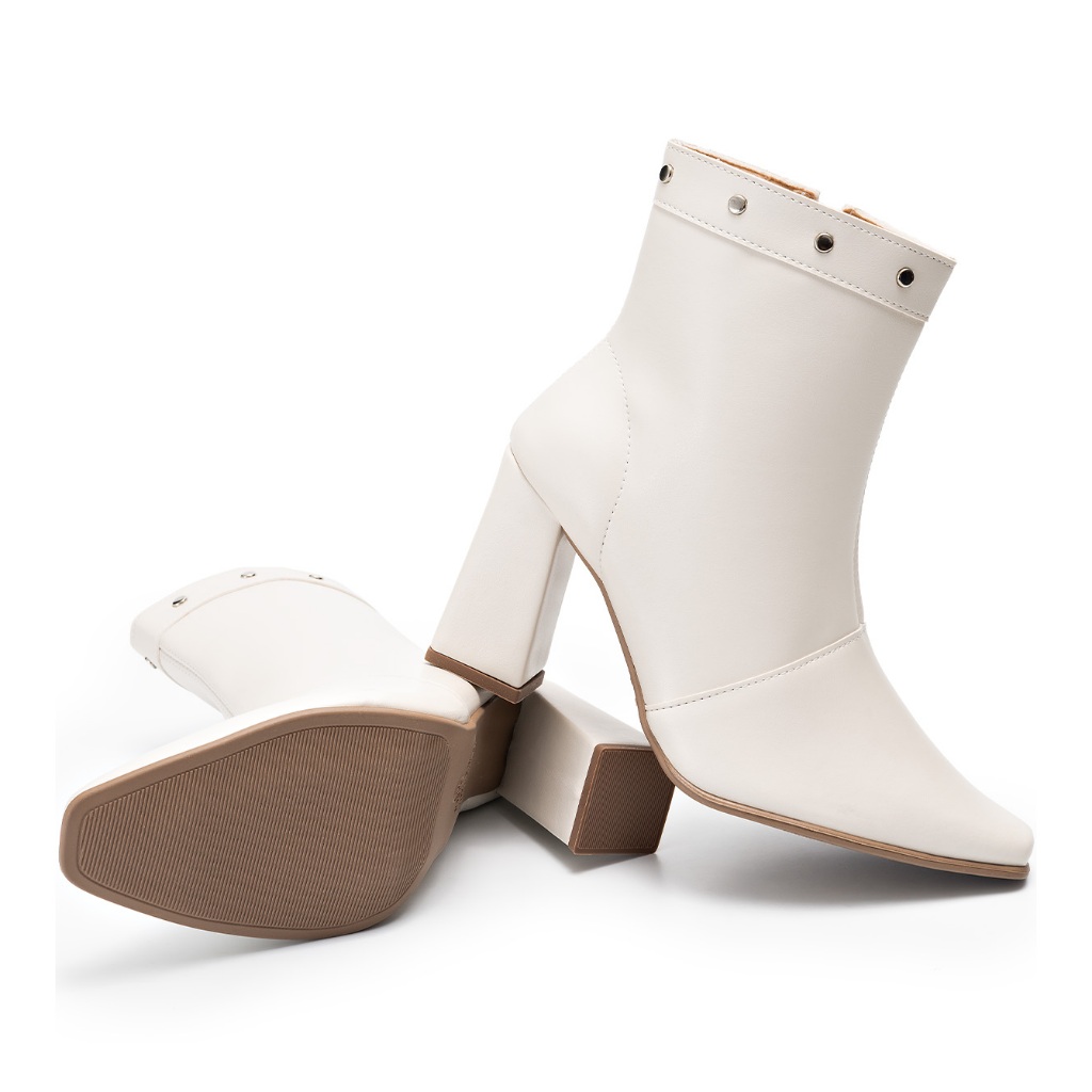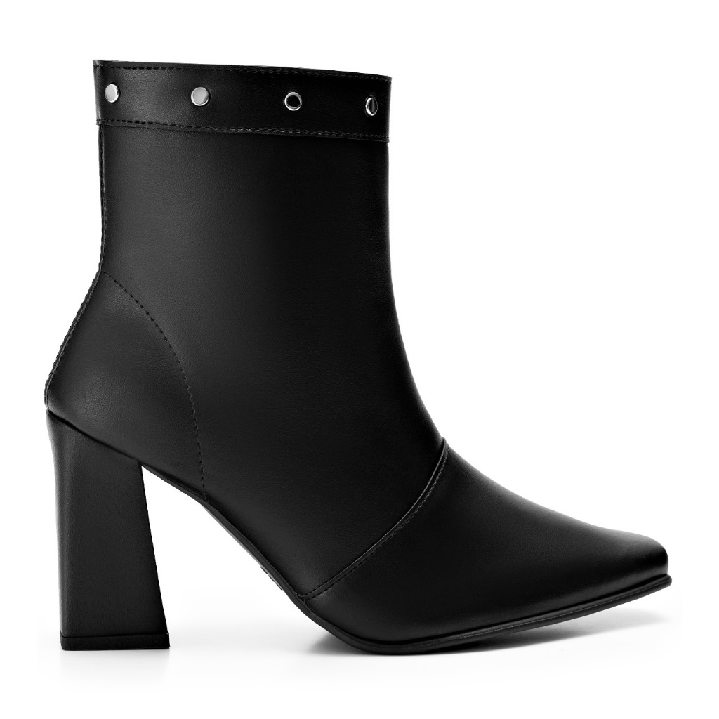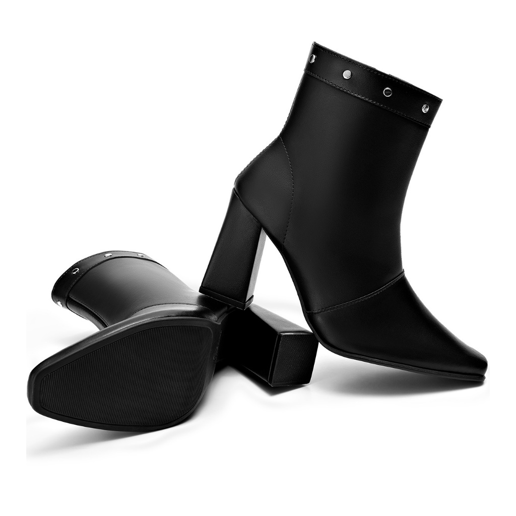 Bota Feminina Lumiss Salto Alto Bloco Cano Baixo Rebite Spike