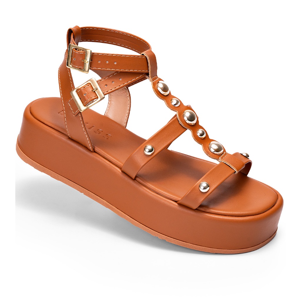 Sandália Feminina Lumiss Confortável Casual Rebite Flatform