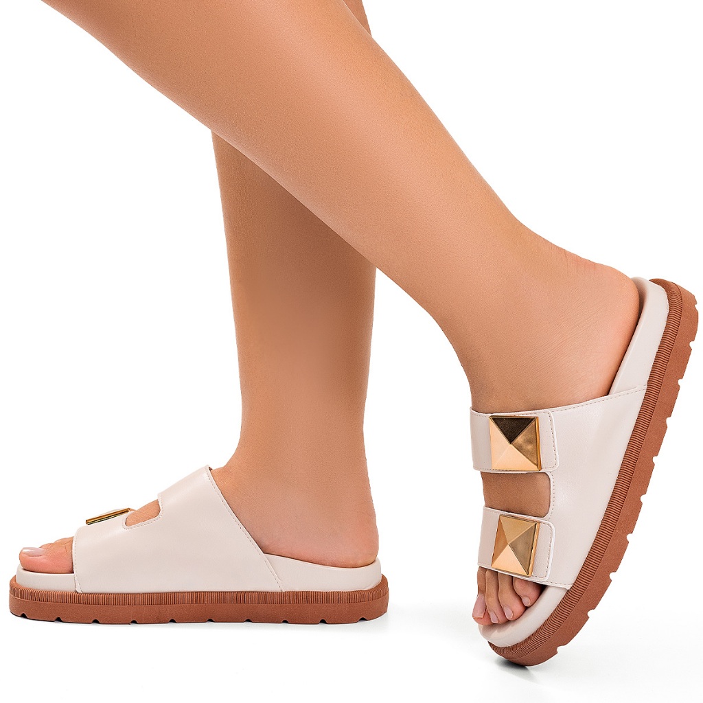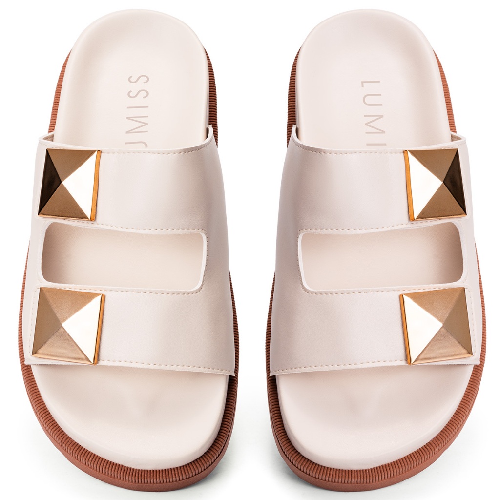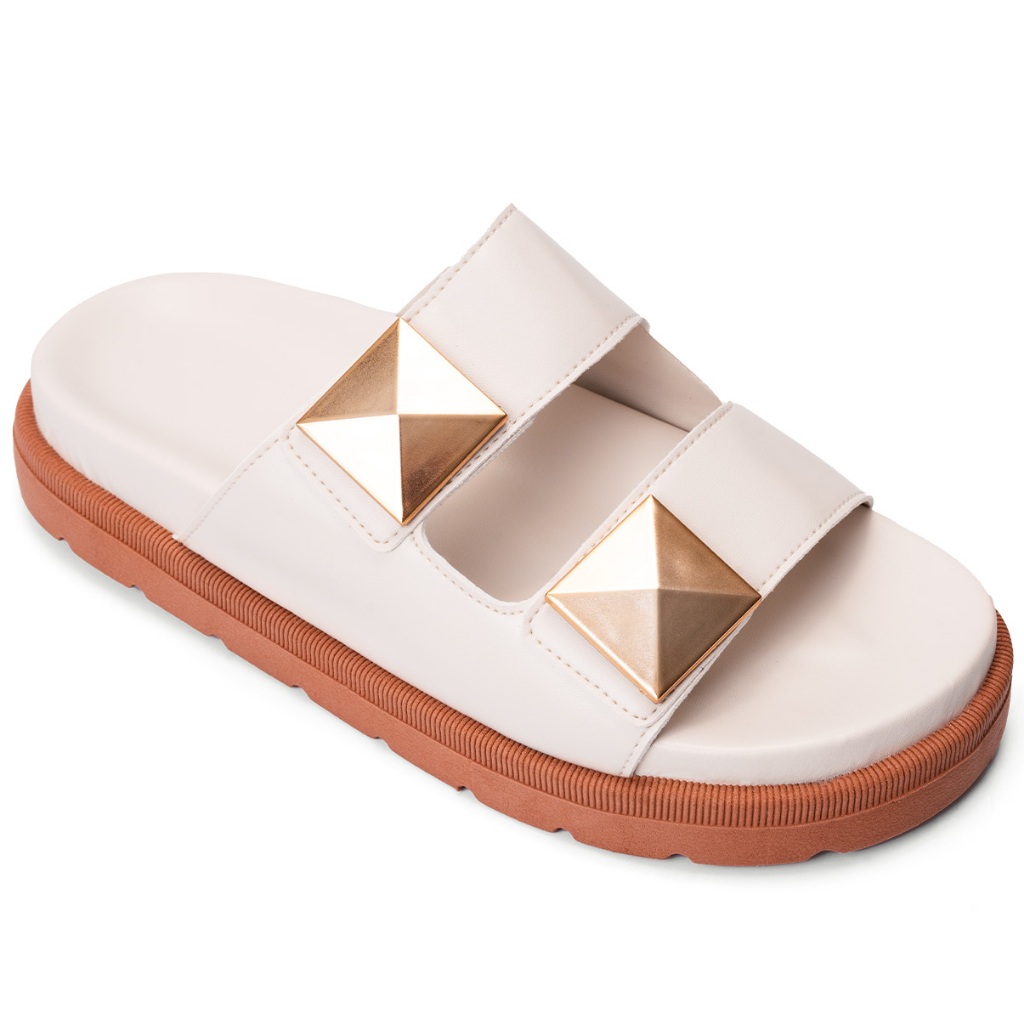Papete Feminina Lumiss Spike Pirâmide Chinelo Casual Confortável Off White
