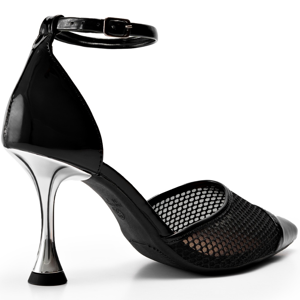 Scarpin Feminino Lumiss Bico Fino Aberto Salto Alto Fino Tela