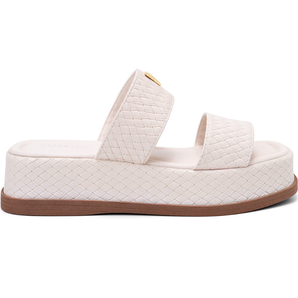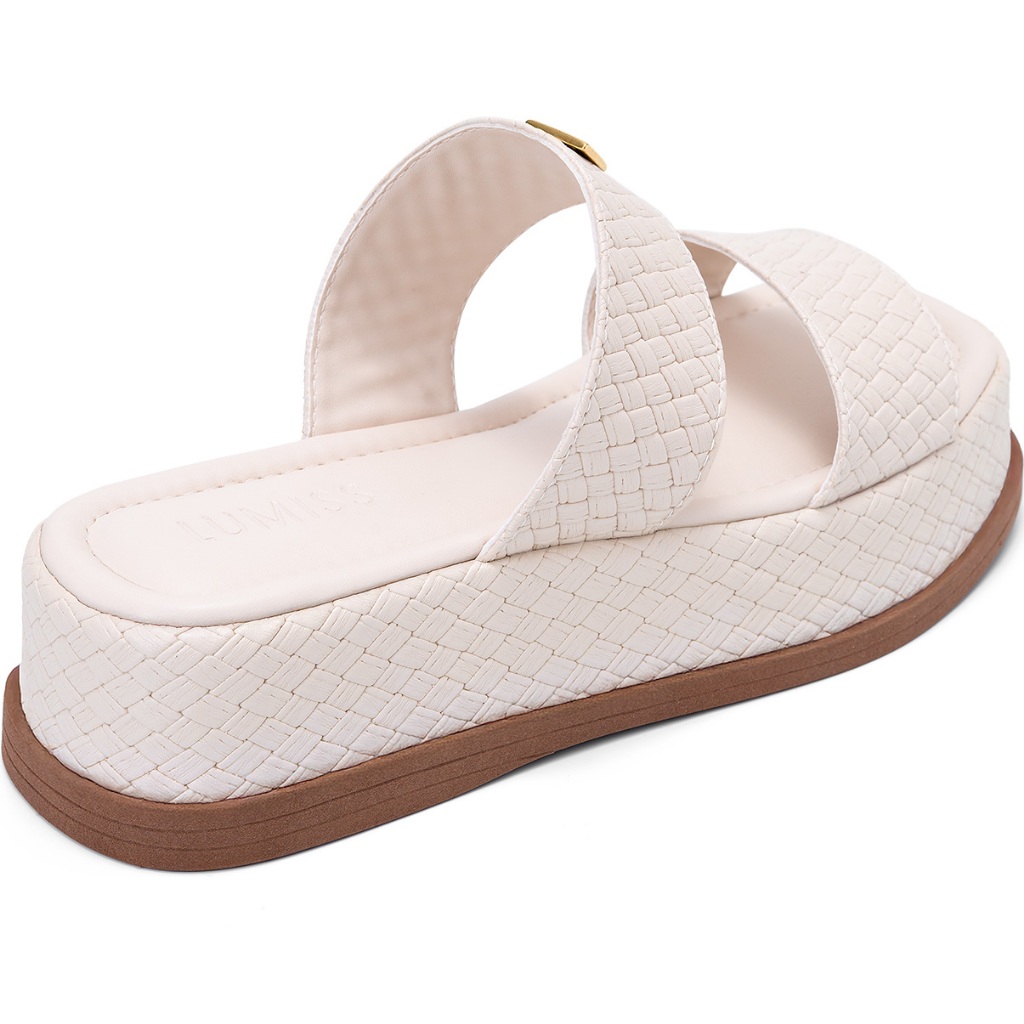 Sandália Feminina Lumiss Tamanco Flatform Confortável Enfeite Metalizado Tressê Off White