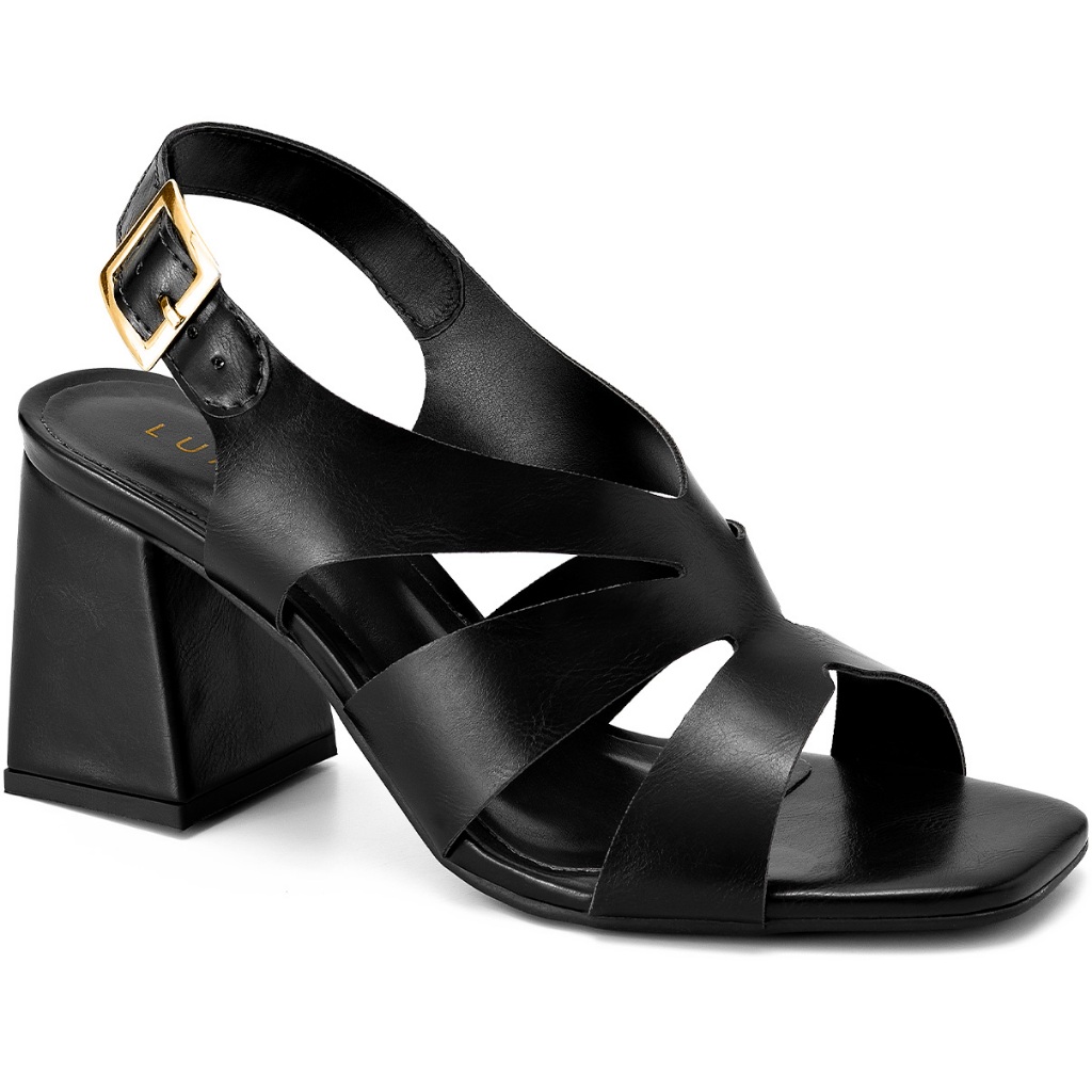 Sandália Feminina Lumiss Salto Alto Bloco Bico Quadrado Recortes Confortável