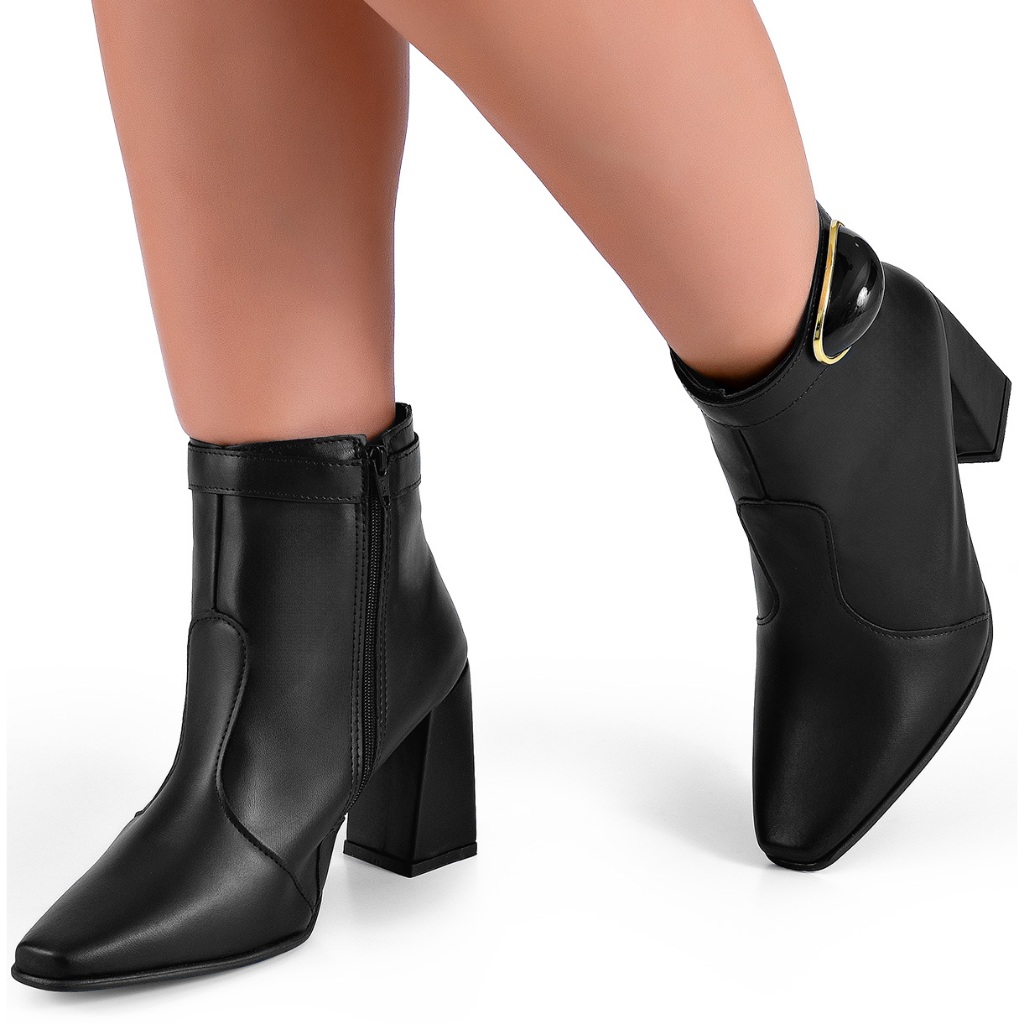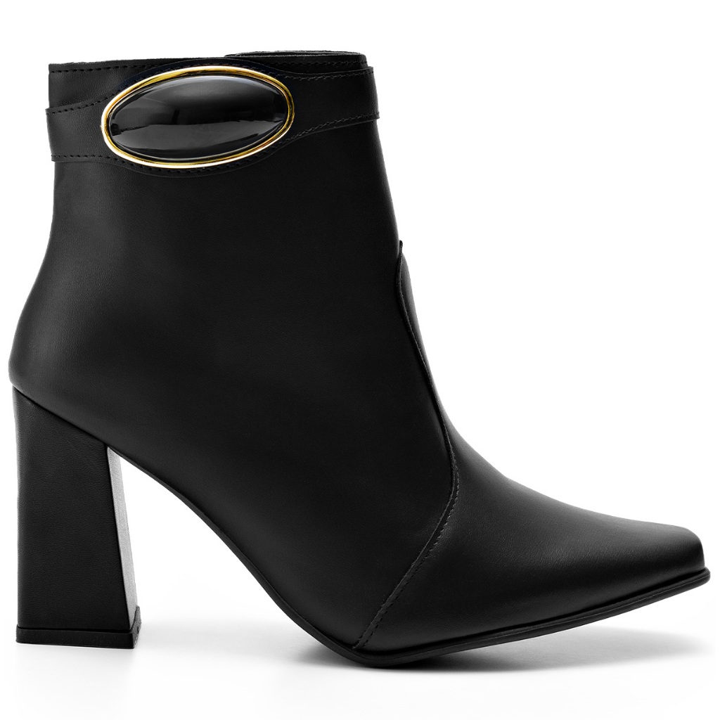 Bota Feminina Lumiss Salto Alto Grosso Cano Baixo Enfeite Metalizado Preto