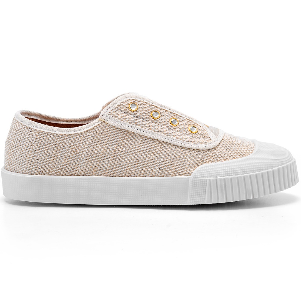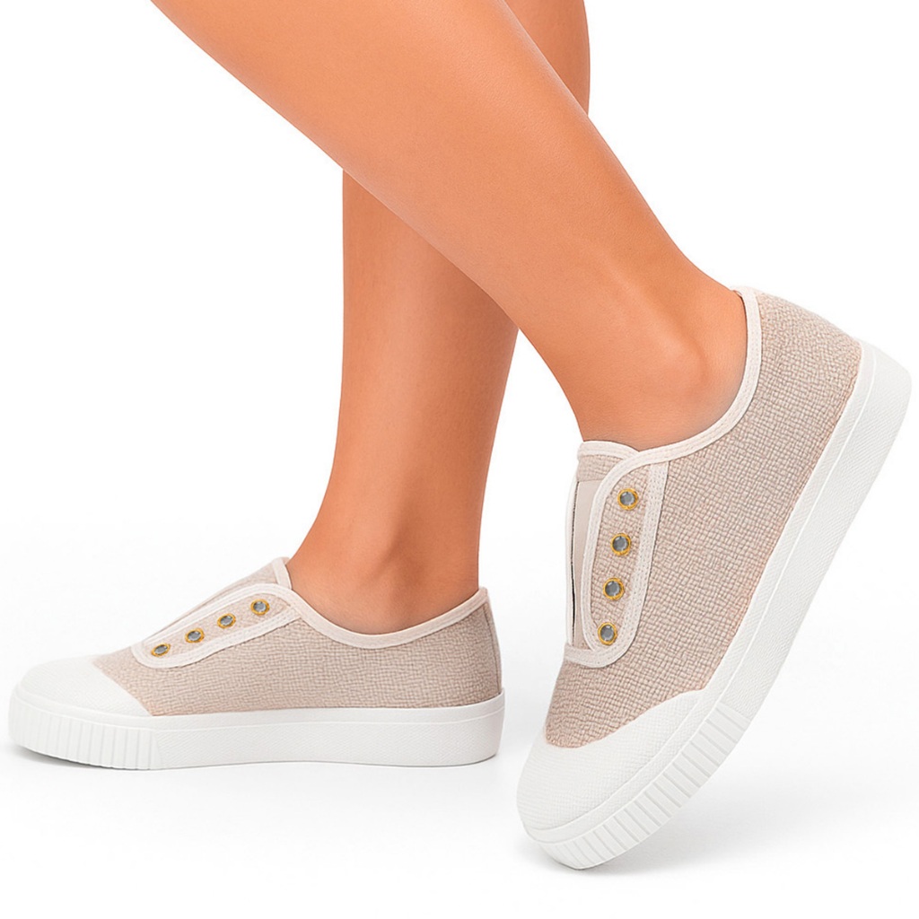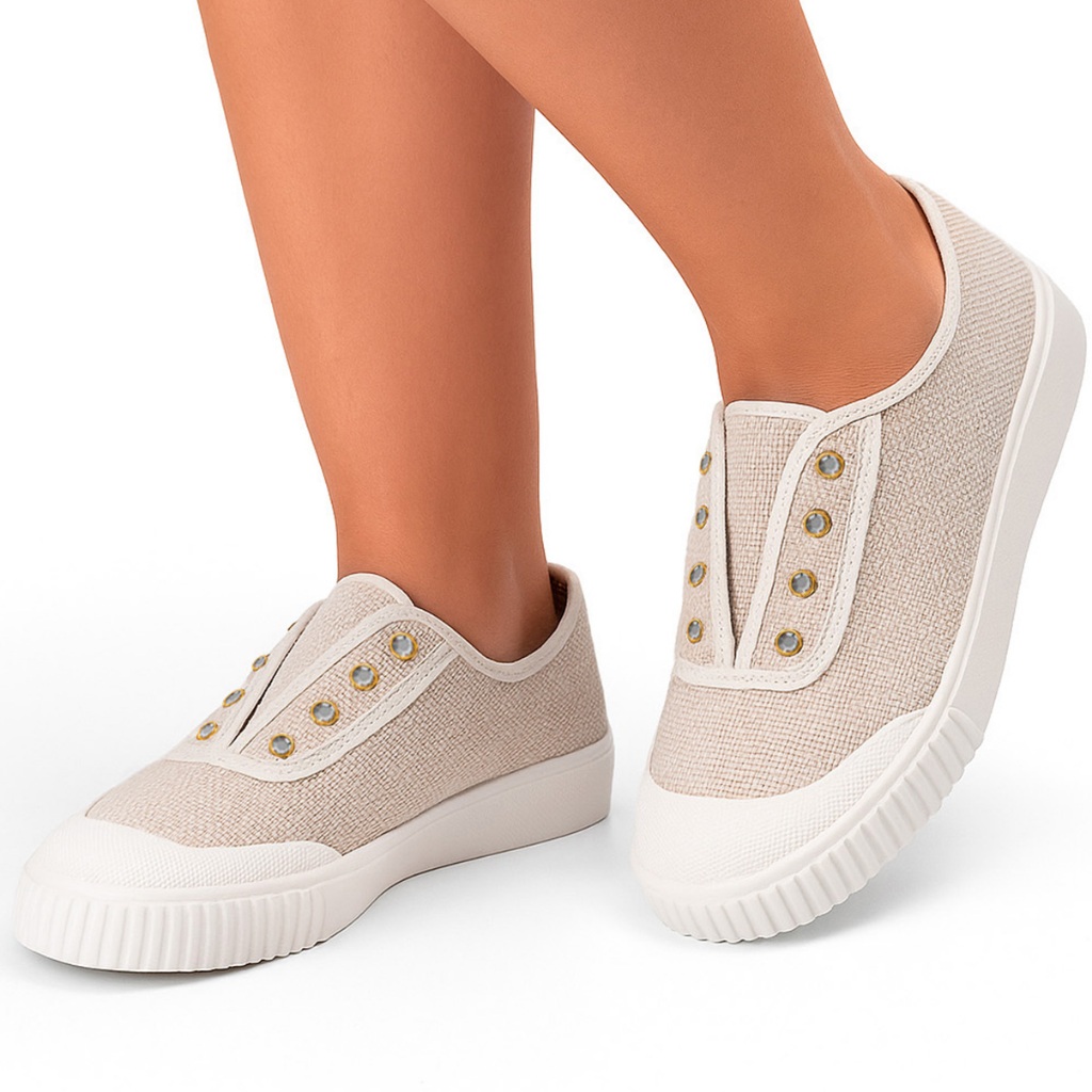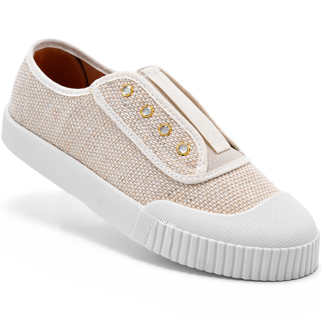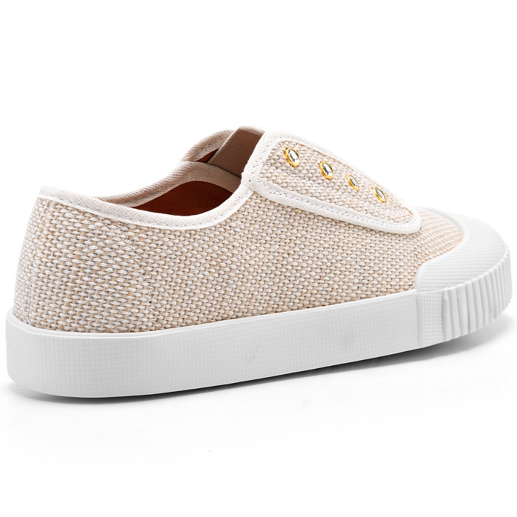 Tênis Feminino Lumiss Lona Calce Fácil Sola Baixa Confortável Elástico Nude