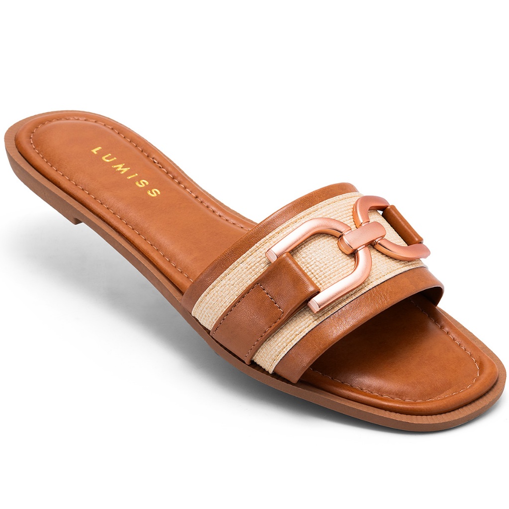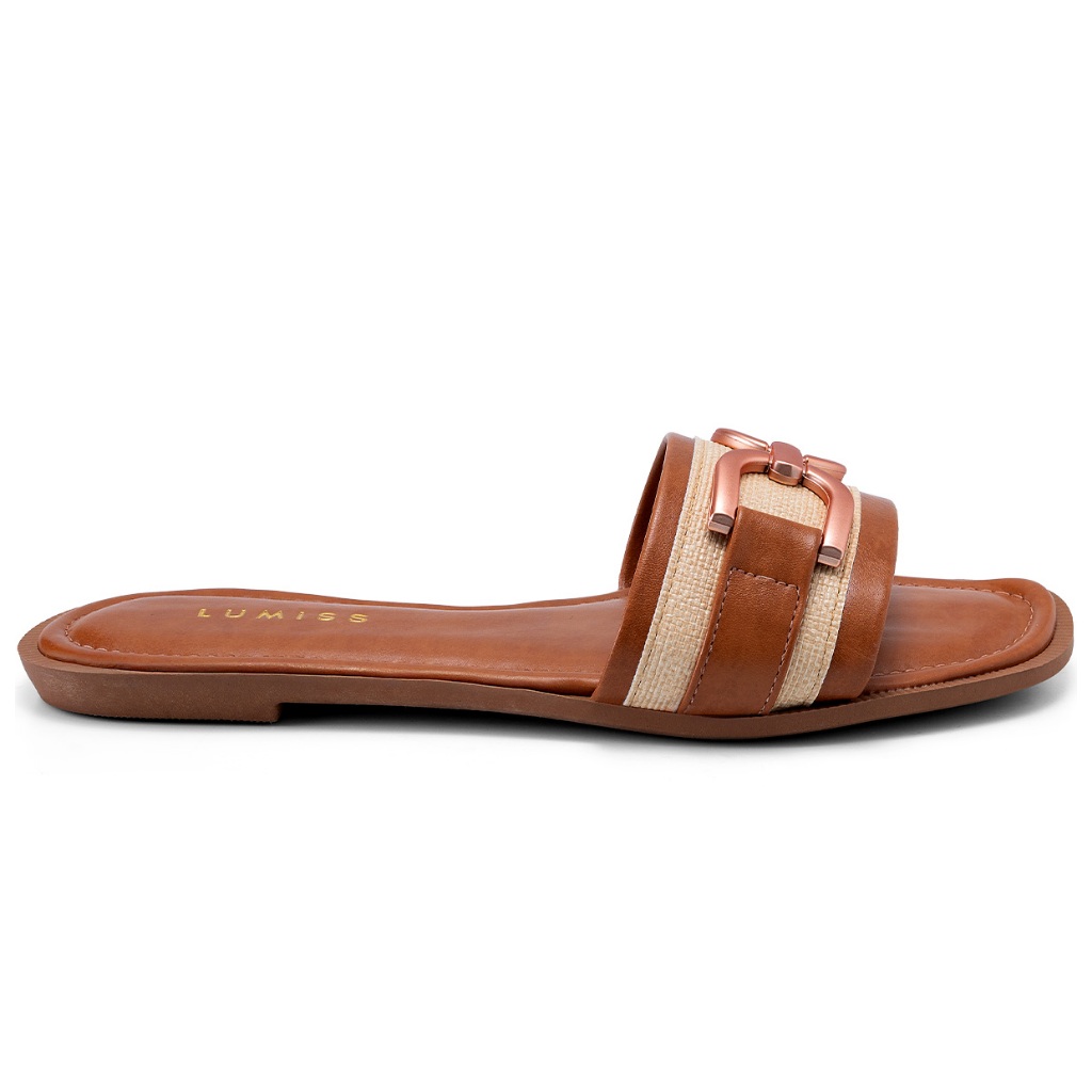 Sandália Rasteira Feminina Lumiss Juta Enfeite Metal Básica Casual Confortável