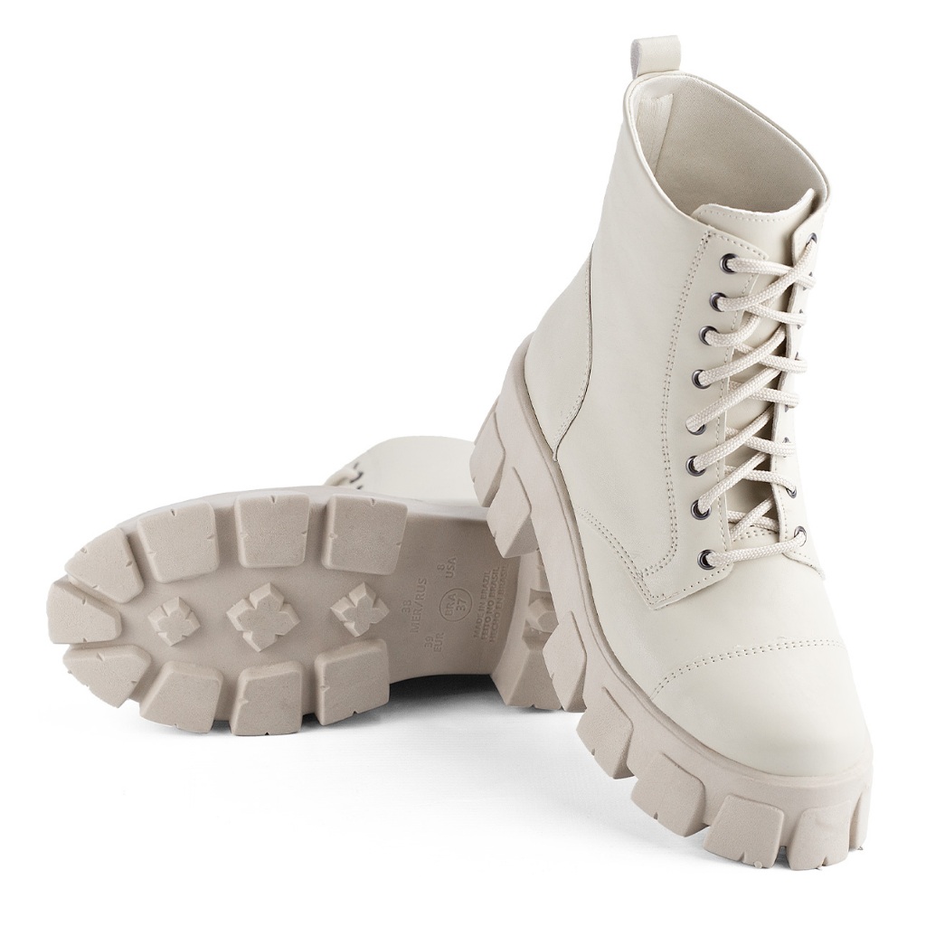 Coturno Feminino Lumiss Tratorado Bota Cano Curto Moda Plataforma Off White