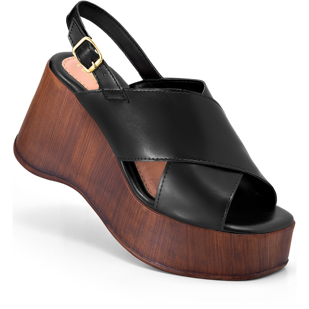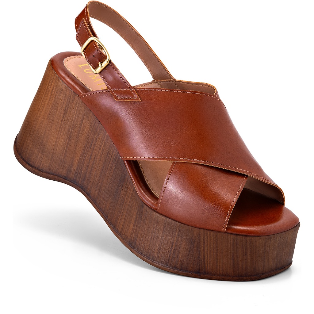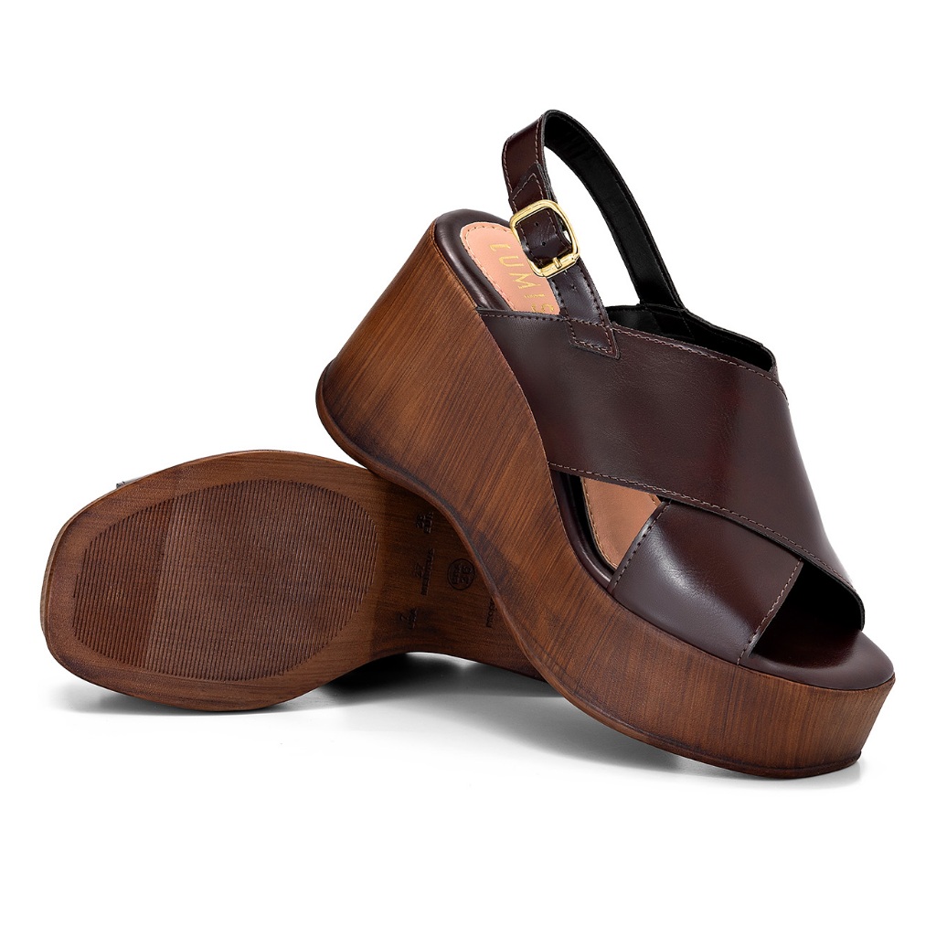 Sandália Feminina Anabela Lumiss Plataforma Madeira Confortável Blogueira