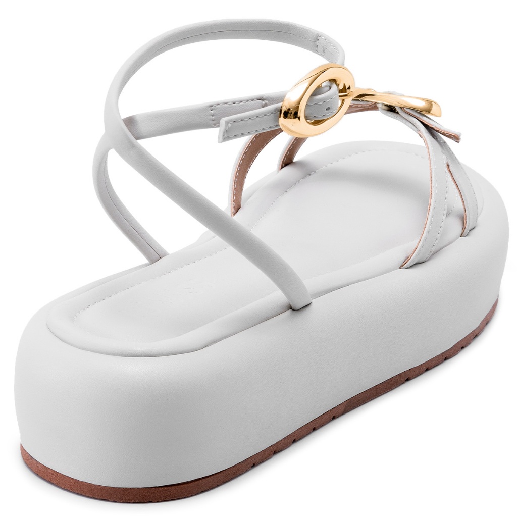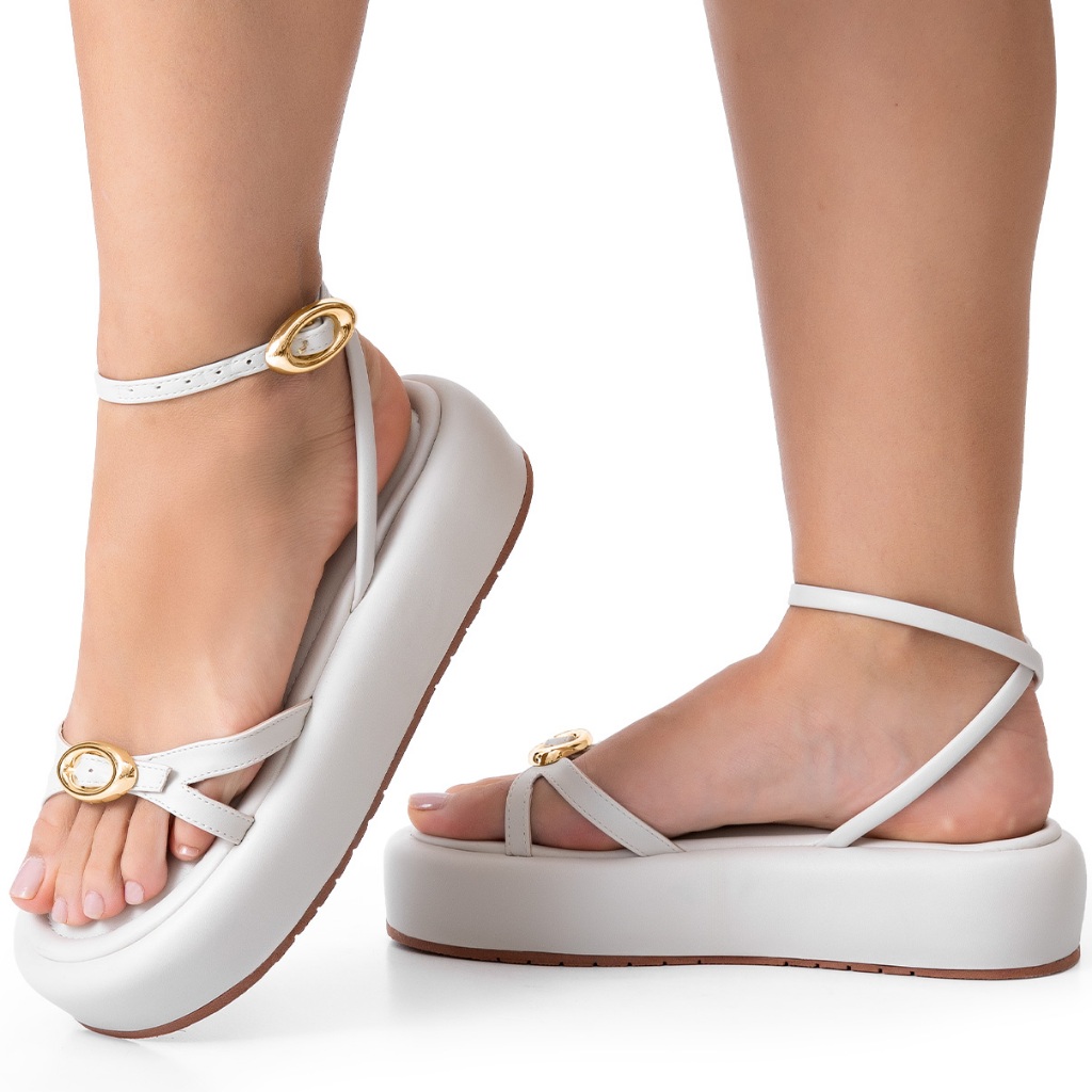 Sandália Feminina Lumiss Flatform Tiras Finas Fivela Oval Dourada Confortável Off White
