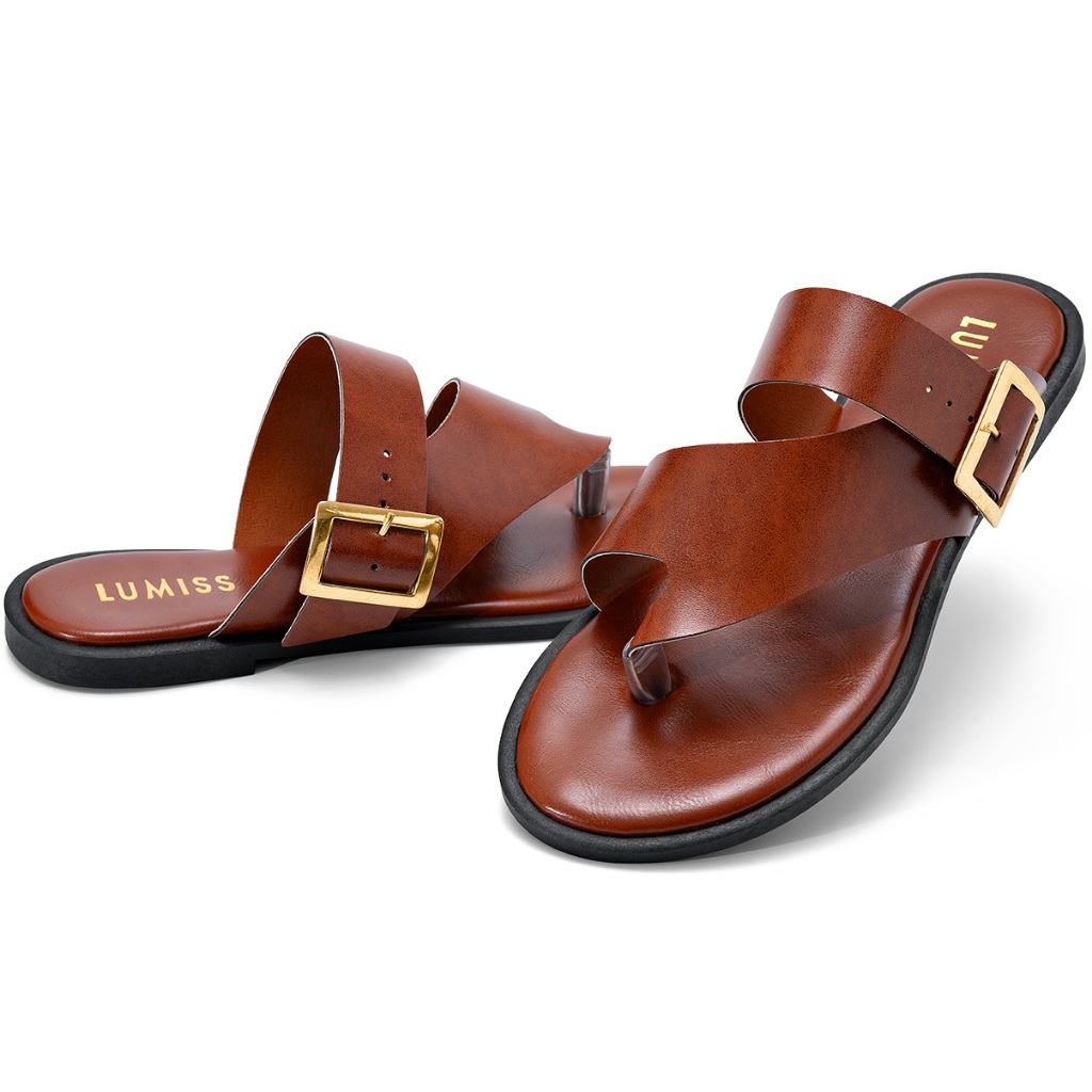 Sandália Rasteira Feminina Lumiss Chinelo Confortável Fivela Dourada Caramelo