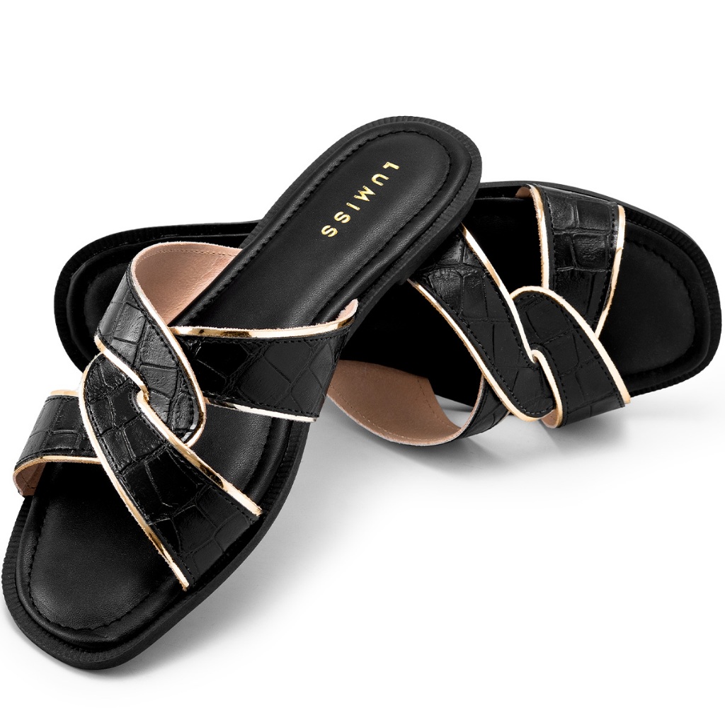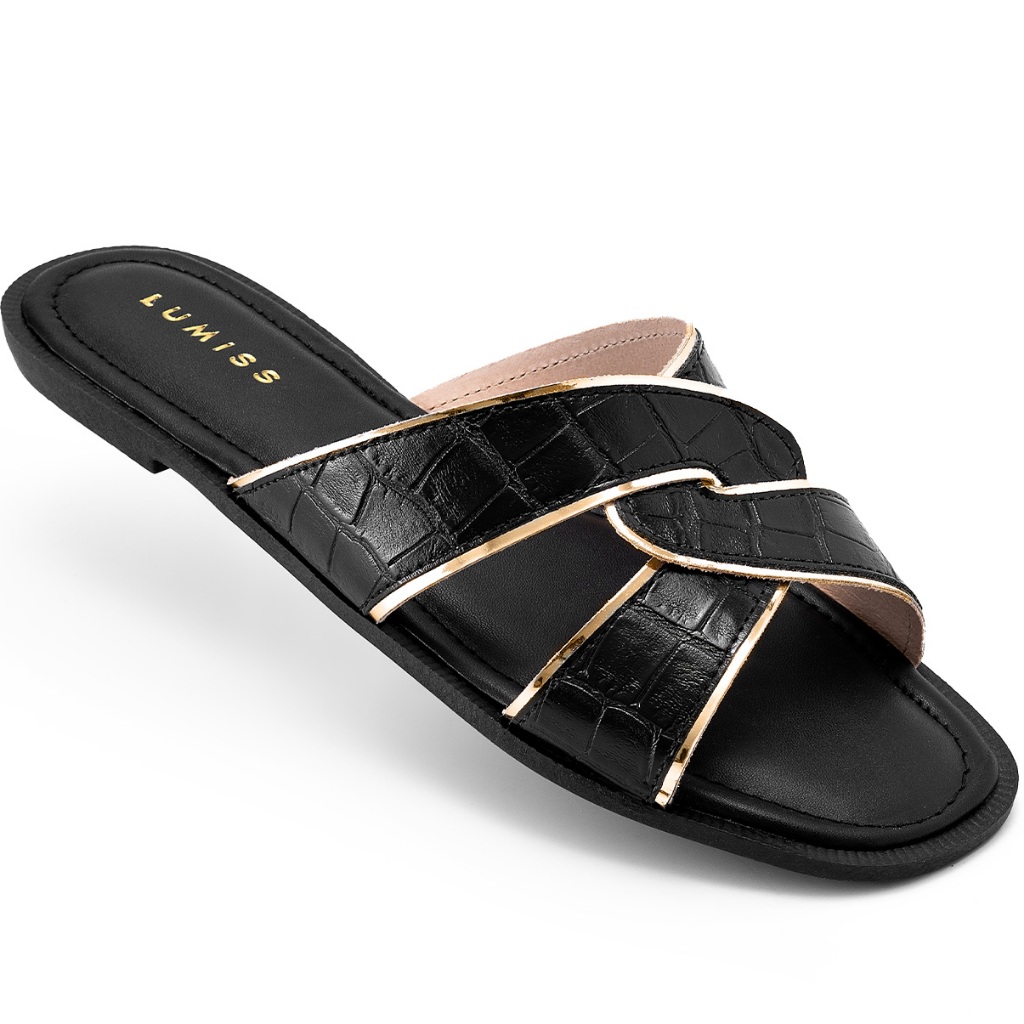 Sandália Rasteira Feminina Lumiss Croco Trançada Confortável
