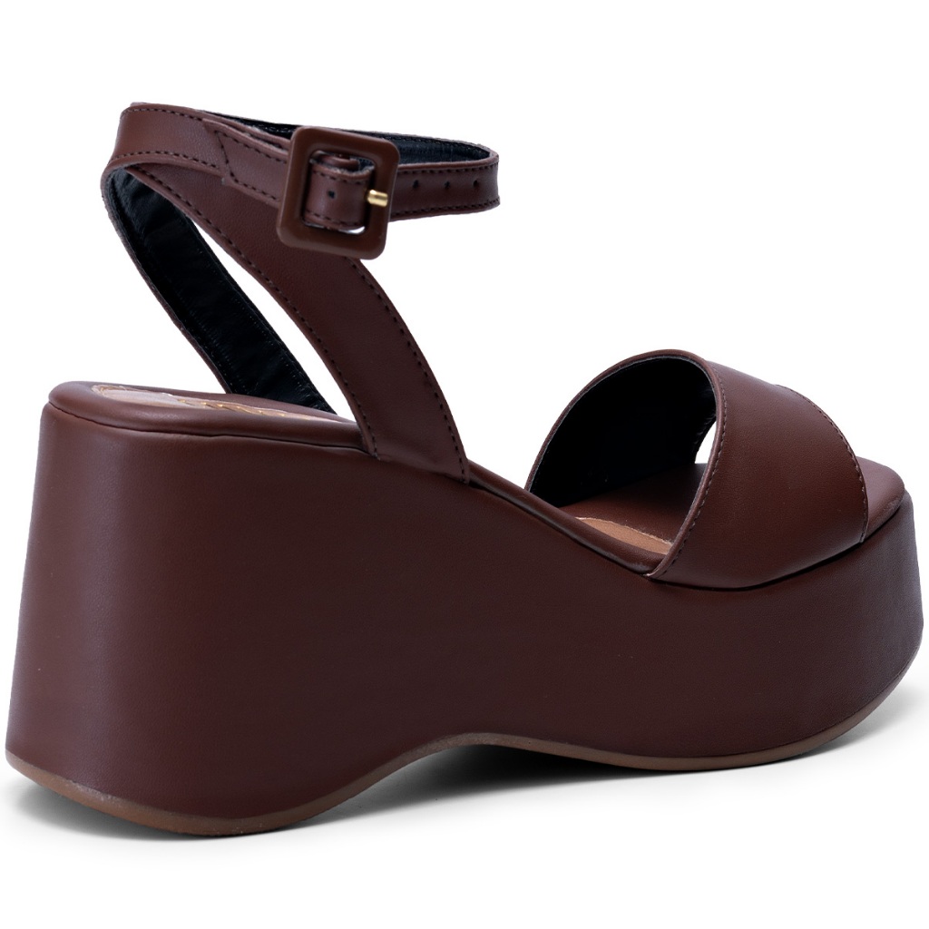 Sandália Feminina Lumiss Anabela Plataforma Salto Alto Confortável Marrom