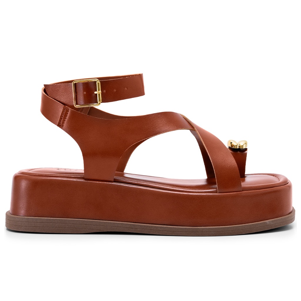 Sandália Feminina Lumiss Flatform Confortável Tiras Fivela Enfeite Metalizado Caramelo