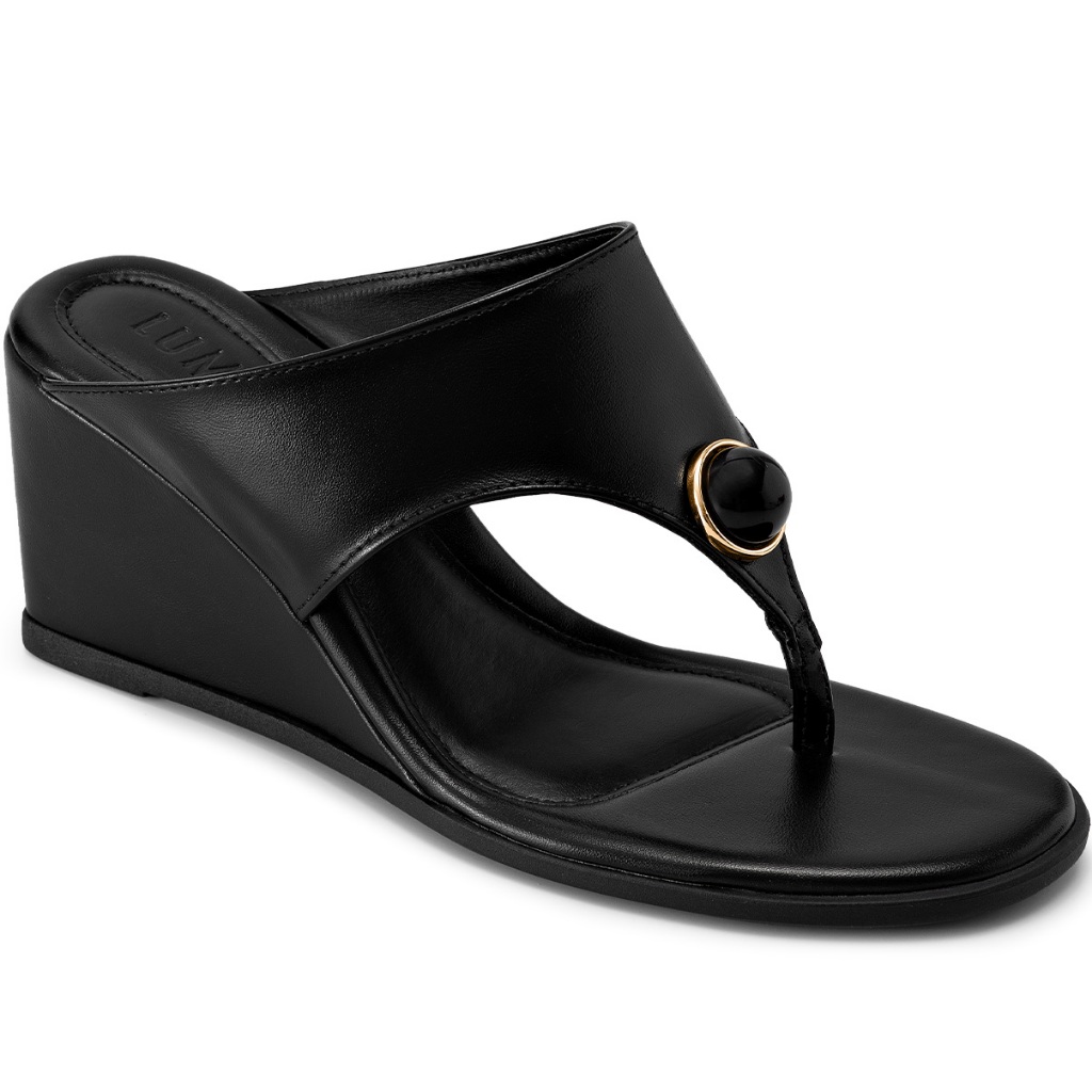 Sandália Feminina Lumiss Anabela De Dedo Bico Redondo Enfeite Esfera