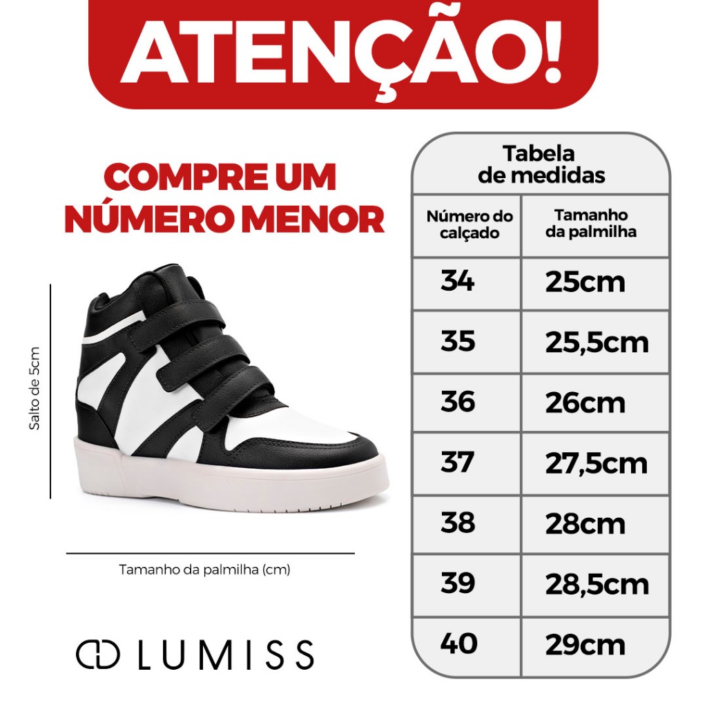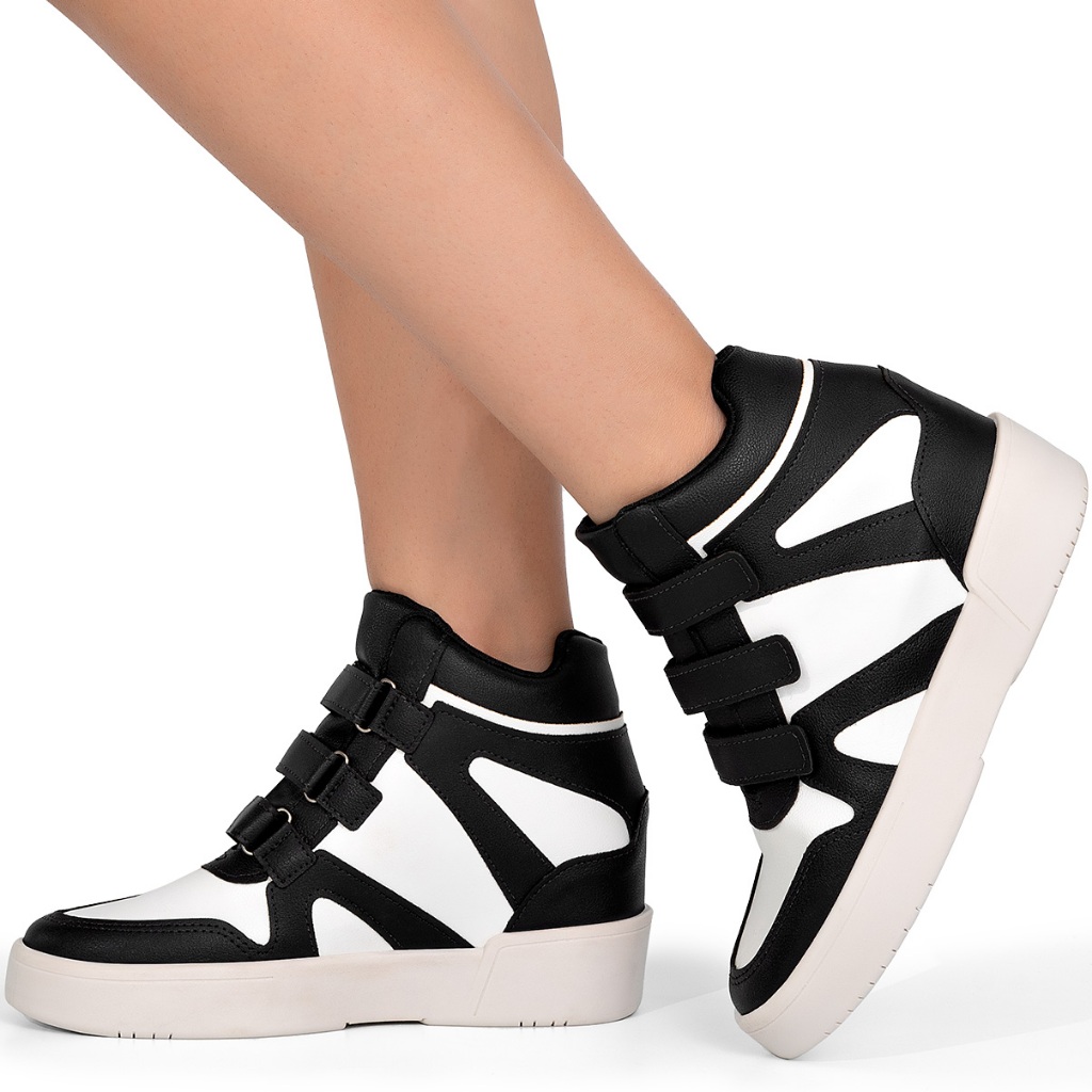 Tênis Feminino Lumiss Sneaker Cano Alto Salto Confortável Tiras Velcro