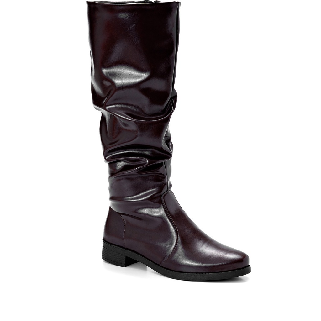 Bota Feminina Lumiss Montaria Cano Longo Slouchy Enrugada Salto Baixo Bico Redondo Marrom