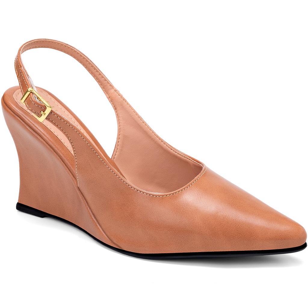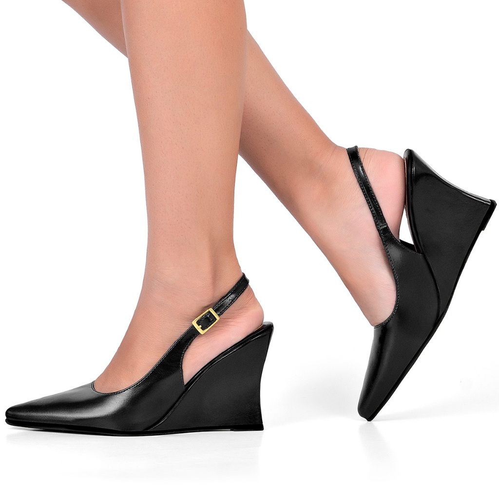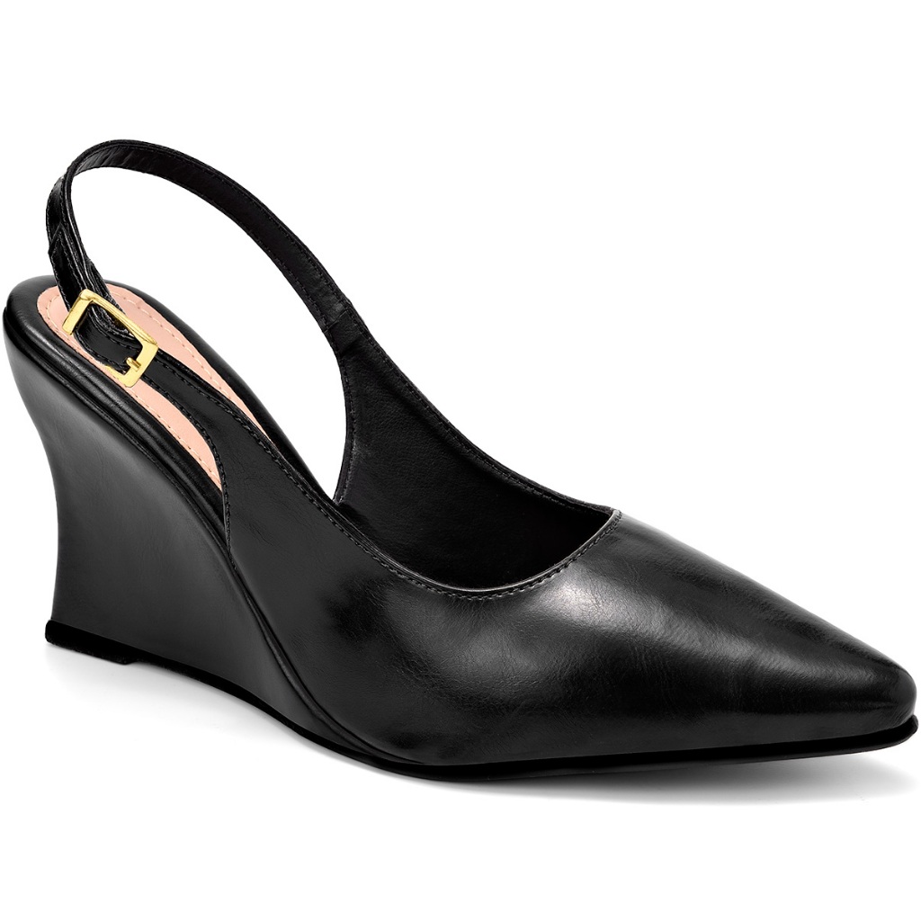Scarpin Feminino Lumiss Slingback Salto Alto Anabela Confortável Bico Fino Fivela