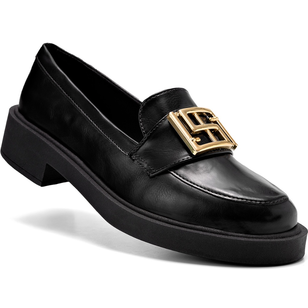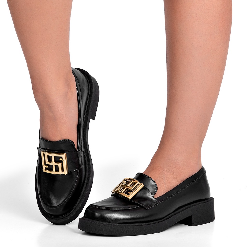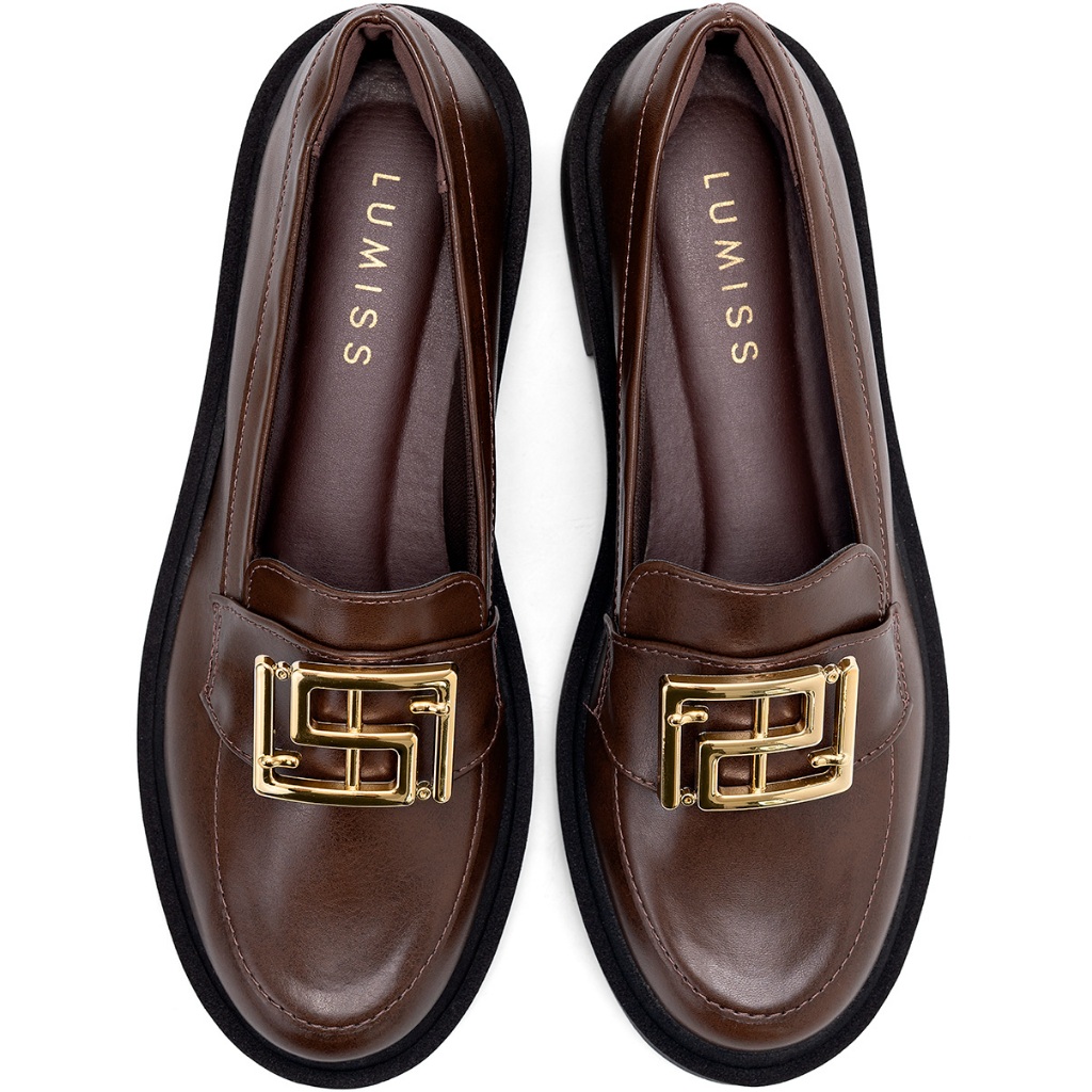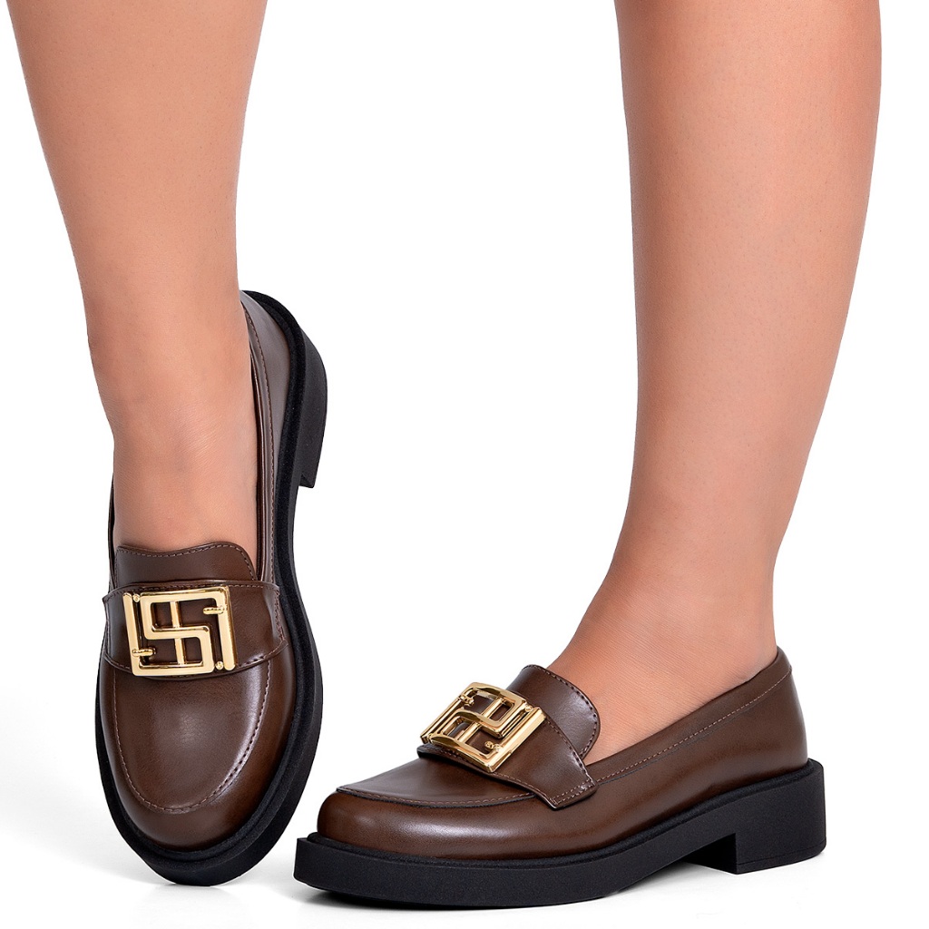 Mocassim Feminino Lumiss Bico Redondo Confortável Enfeite Metalizado Dourado