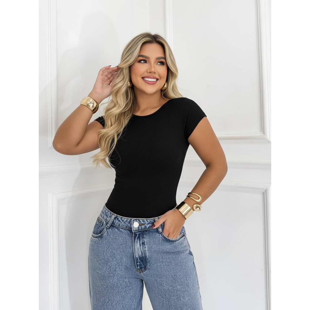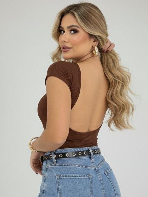 Body Costas Nua Manga Curta Sexi Sensual em Suplex Casual e Elegante Conforto e Estilo