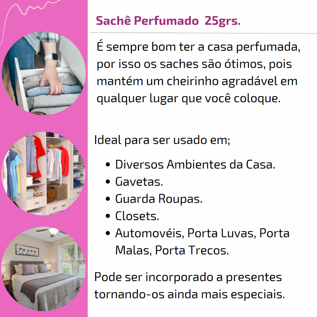 Kit 3 Sache Perfumado Aromático para Armário Gaveta Guarda Roupas Closet Carro Escritório Casa 25g