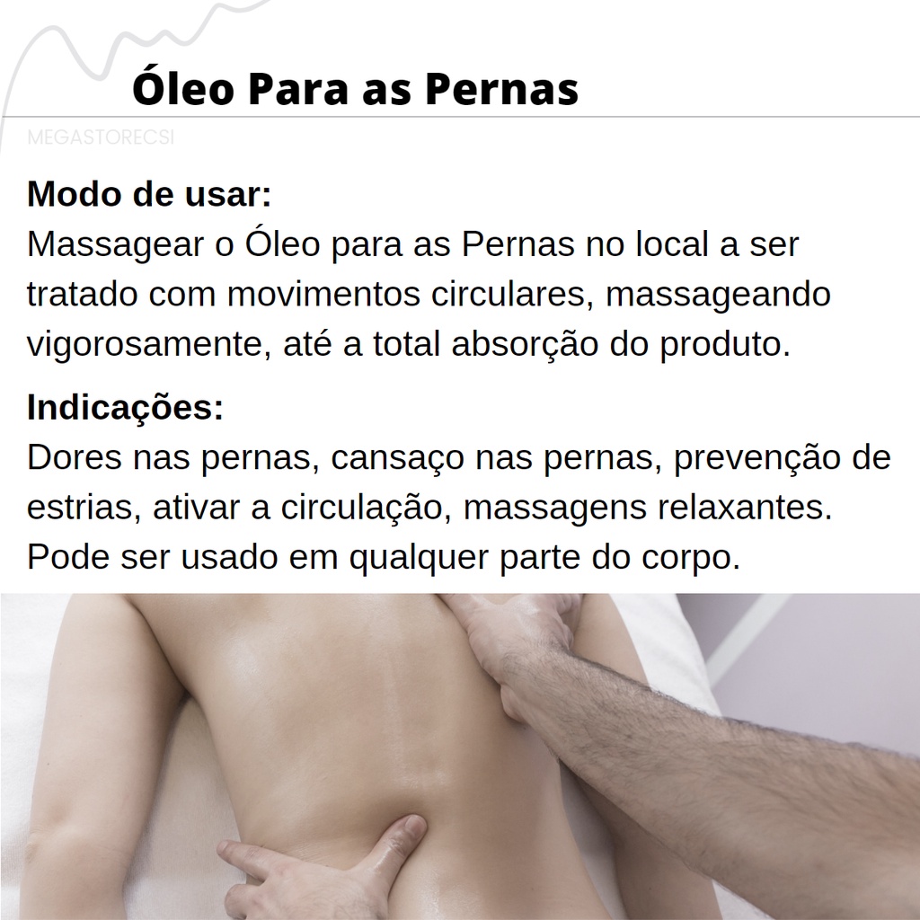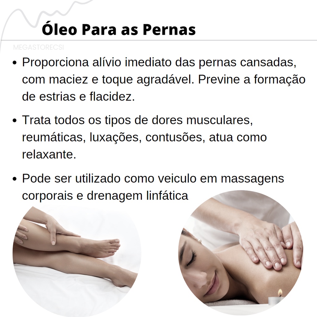 Óleo de Pernas STRONG Dores e Cansaço nas Pernas Massagem Relaxante Previne Estria Ativa Circulação