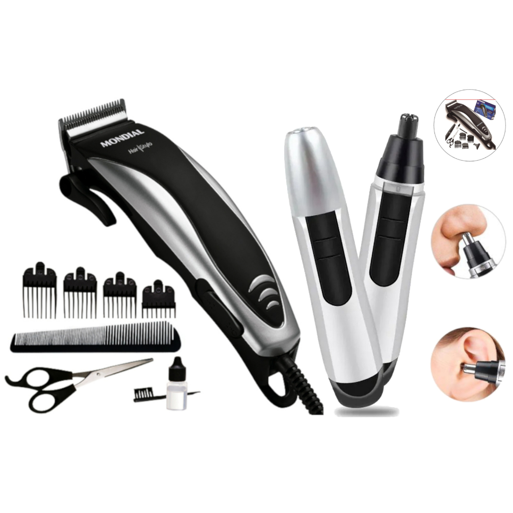 Kit Máquina Para Corta Cabelos E Barba Mondial + Aparador Nasal Nariz e Orelha
