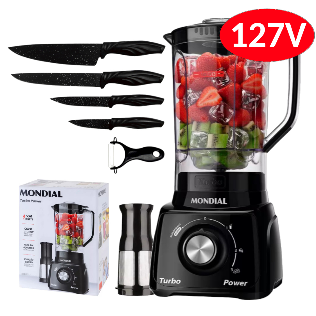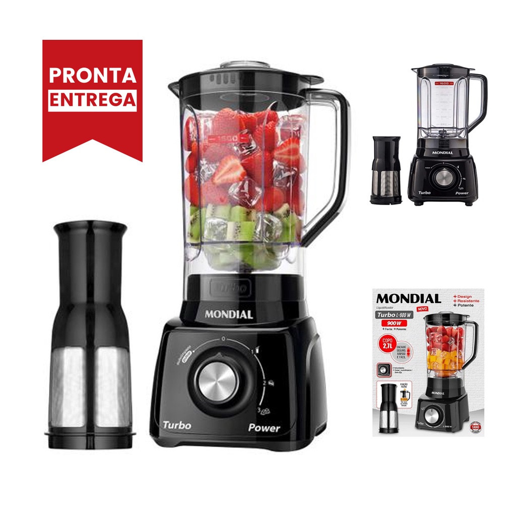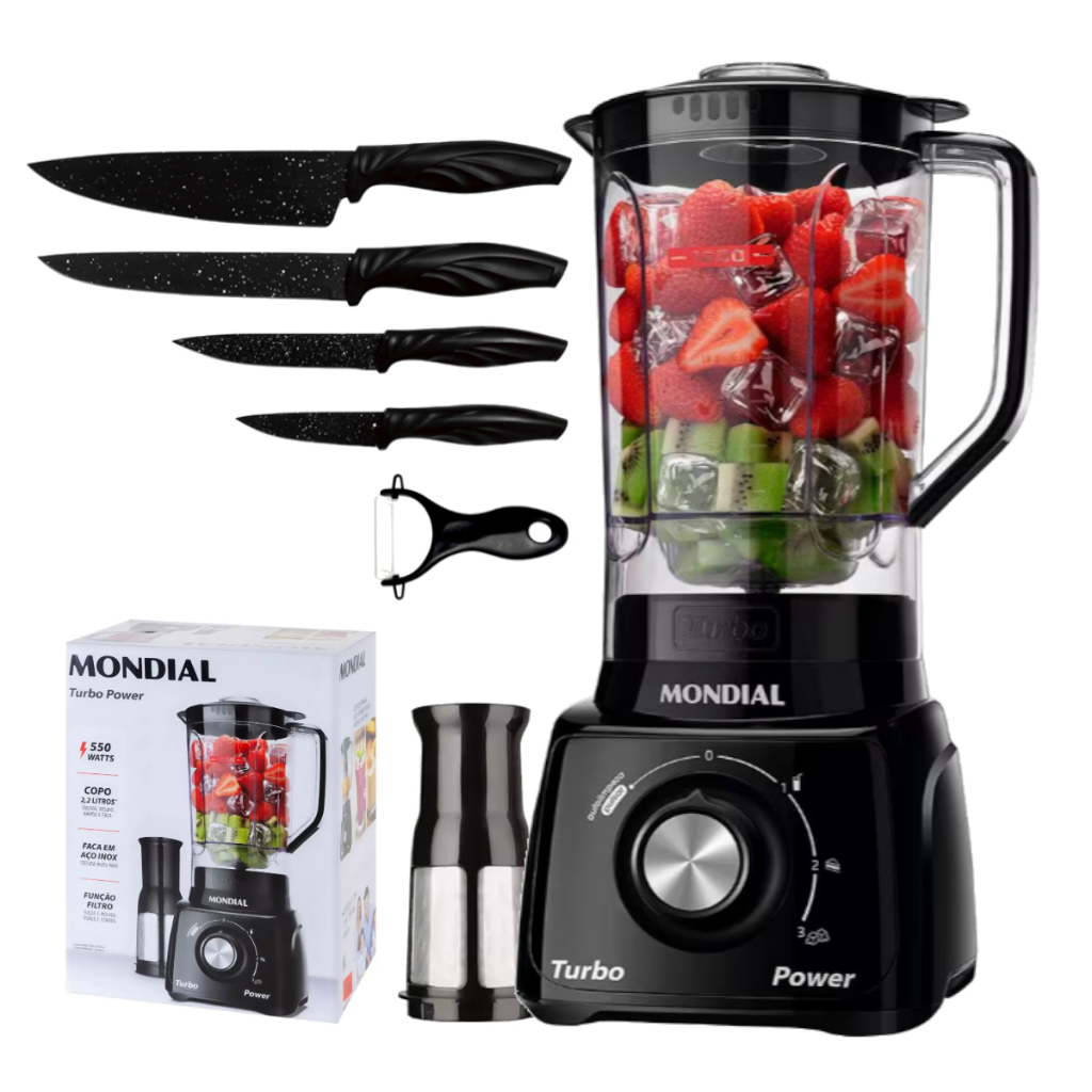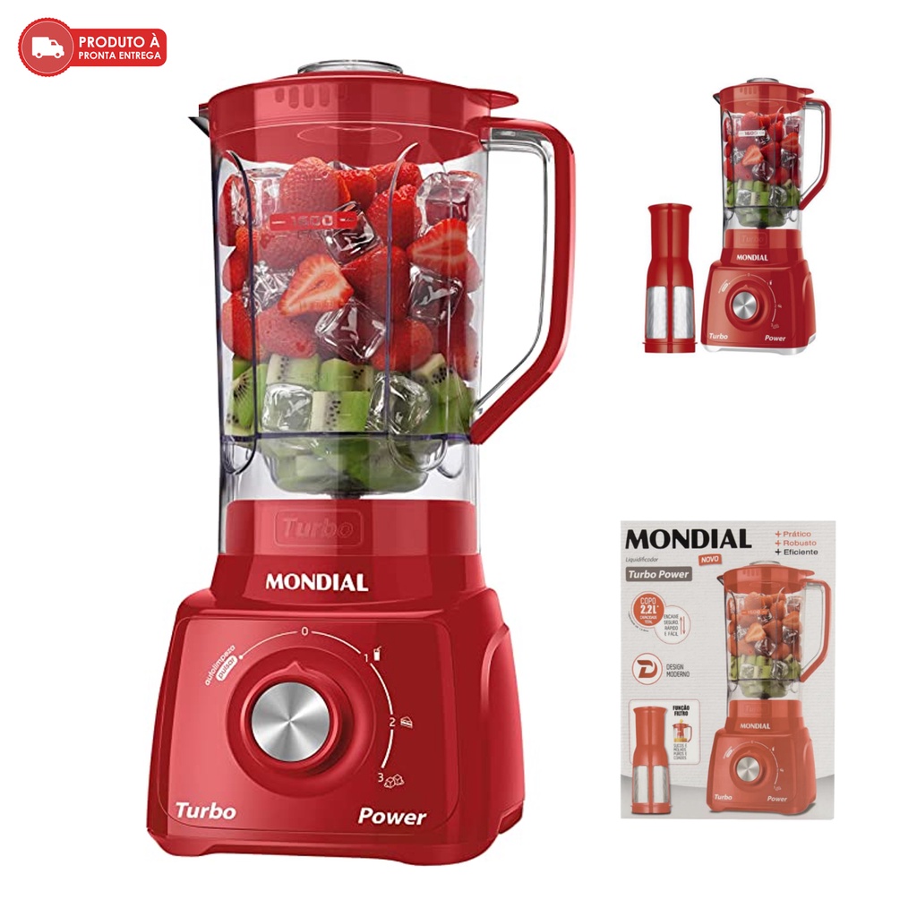 Liquidificador Mondial Turbo Power 2,2L - Com Filtro 3 Velocidades 550W 110V/220V - Envio Rápido