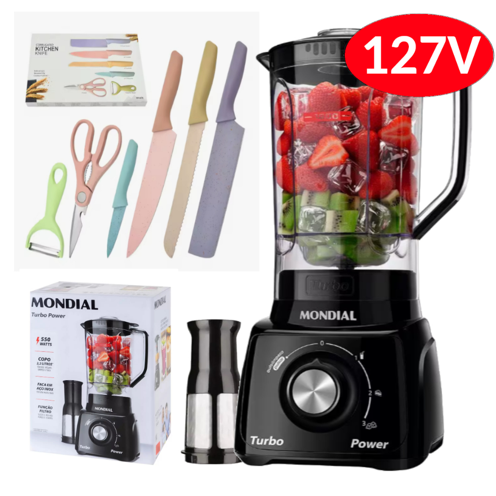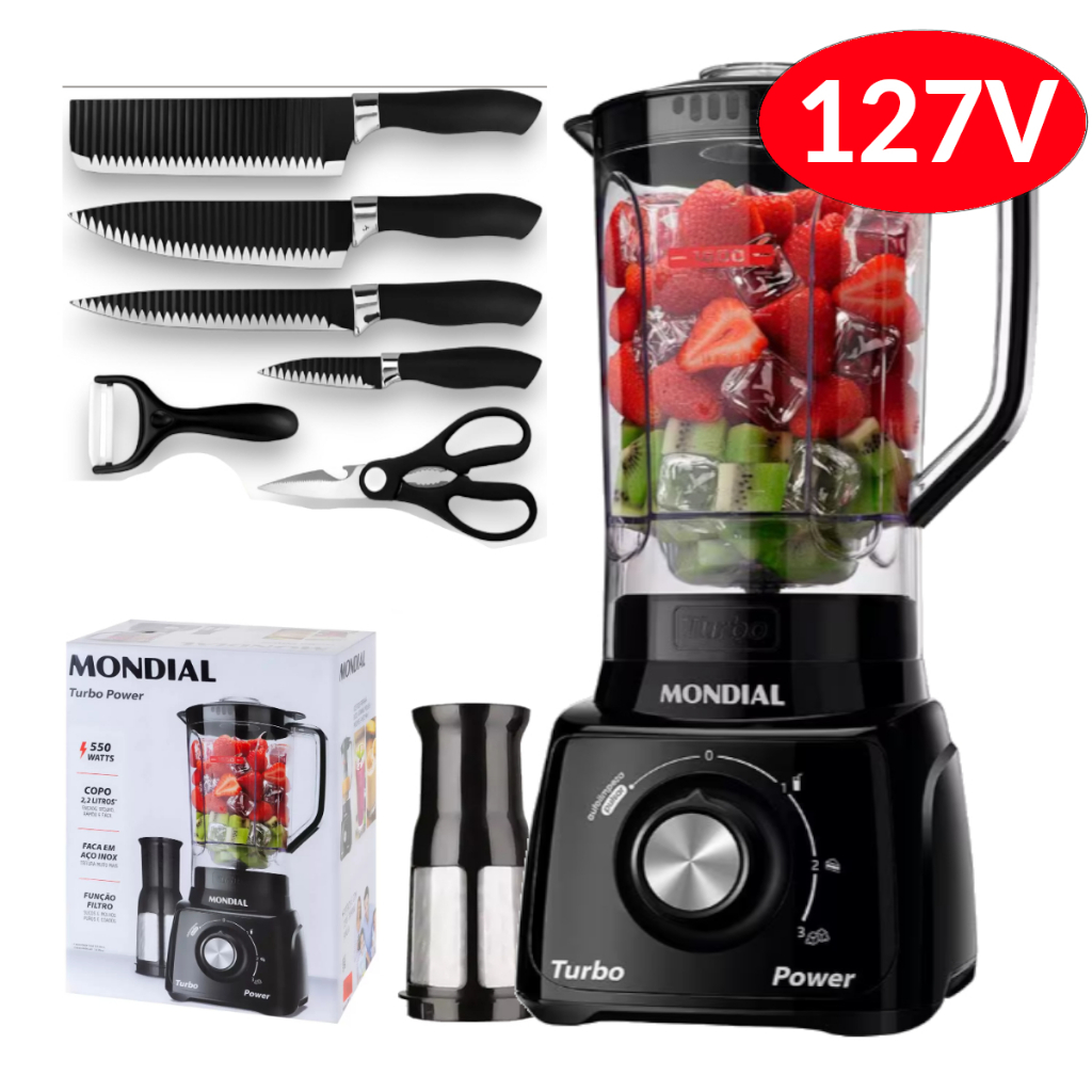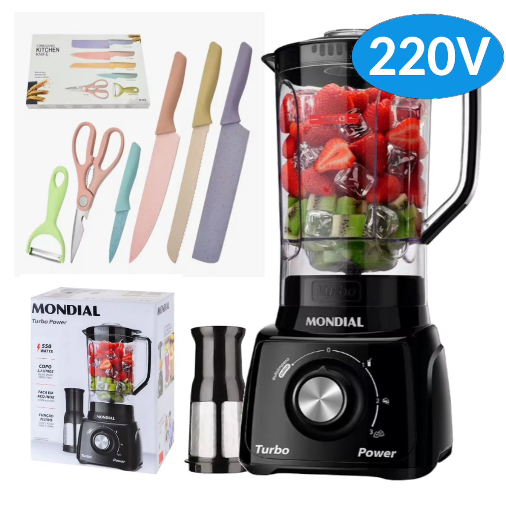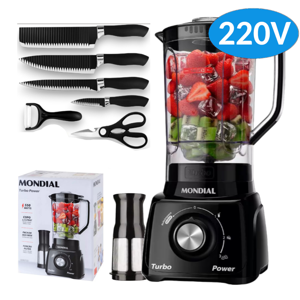 Liquidificador Mondial Turbo Power 2,2L - Com Filtro 3 Velocidades 550W 110V/220V - Envio Rápido
