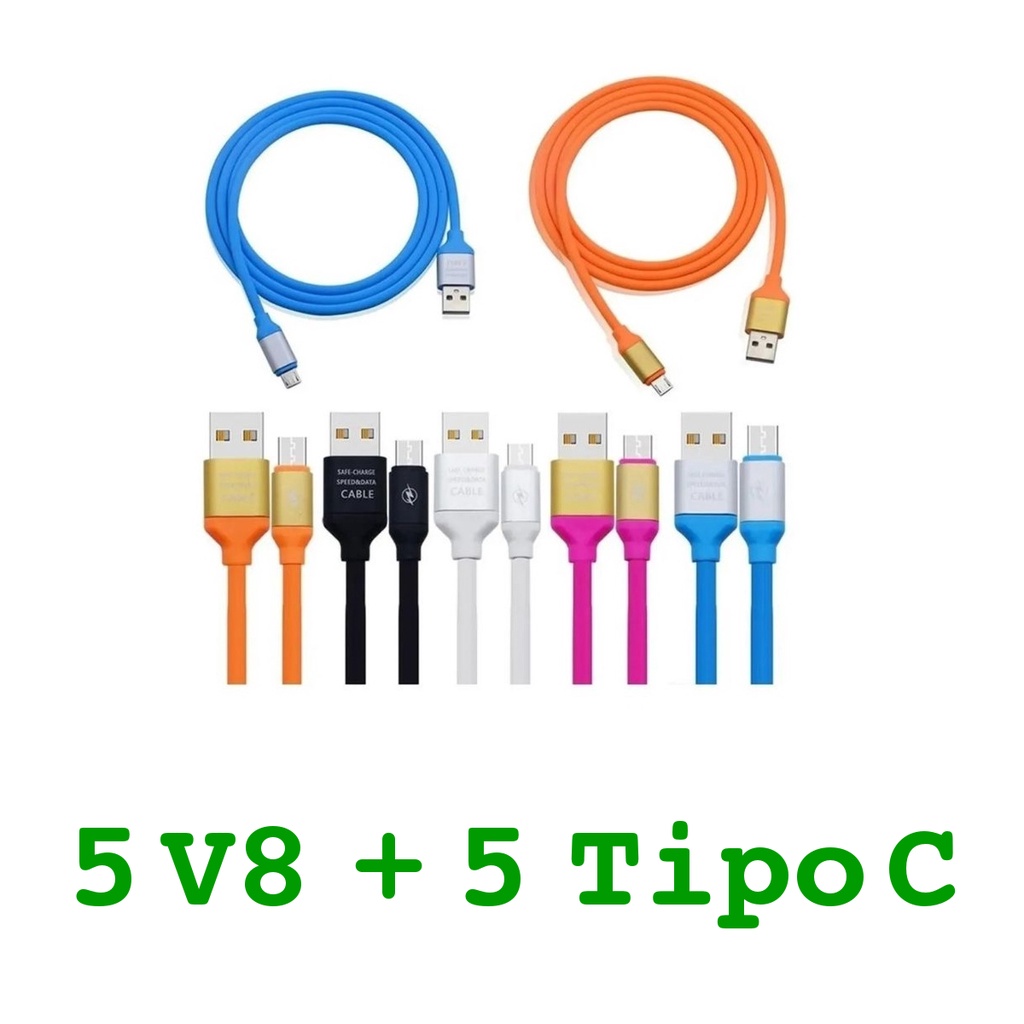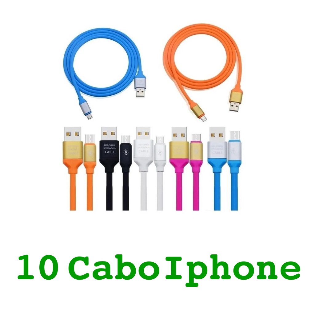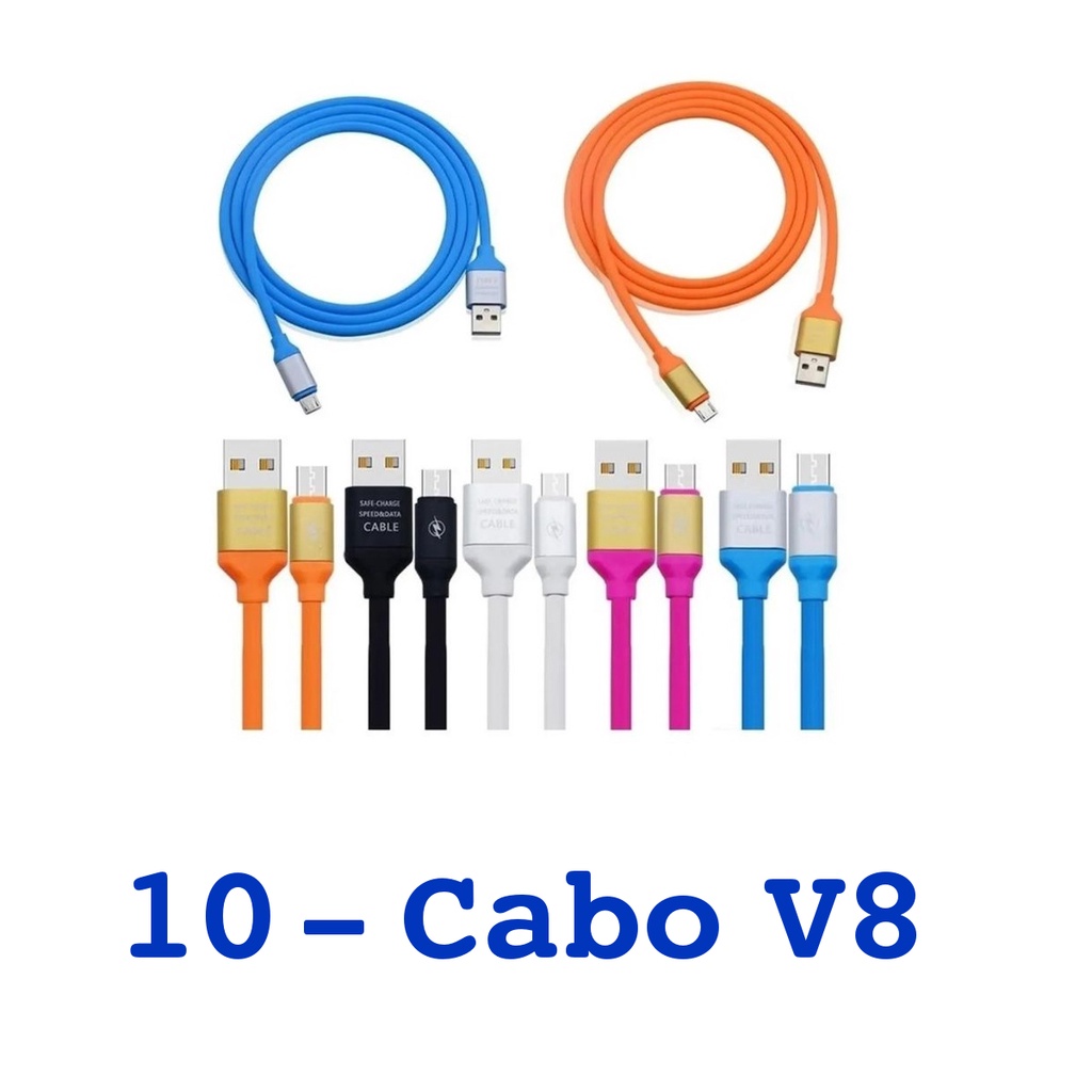 Kit 10 Cabo de Dados Turbo Emborrachado 1 Metro Micro USB V8 - Envio Rápido
