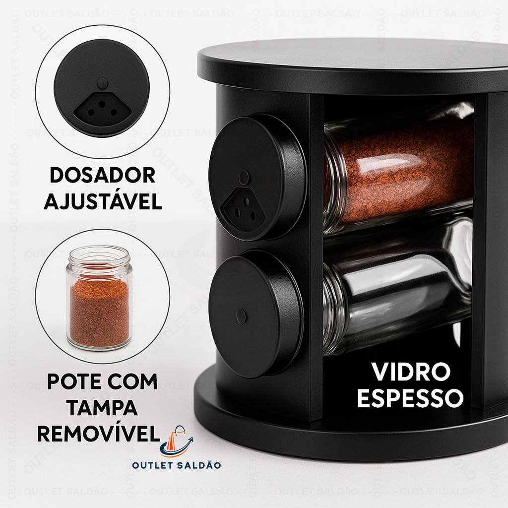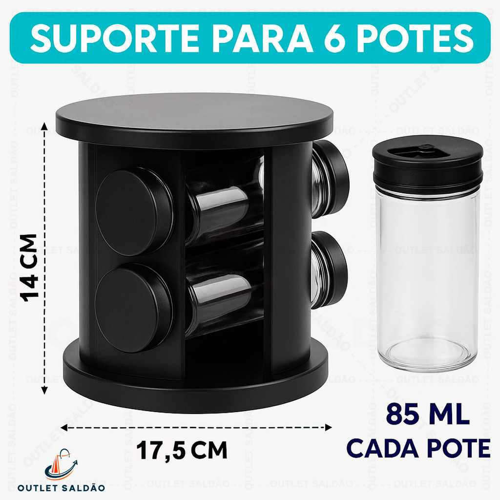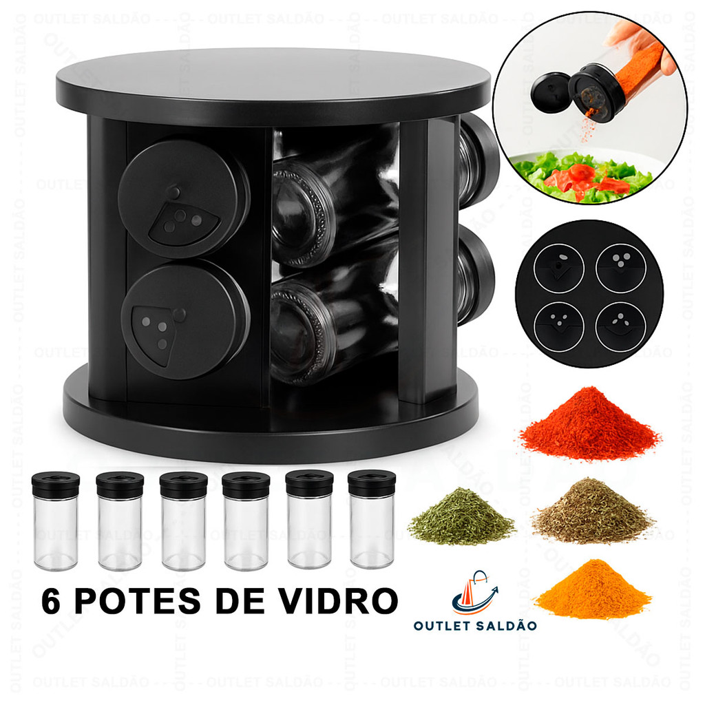 Porta Condimentos Temperos Organizador Giratório 360° 6 Potes de Vidro Com Suporte