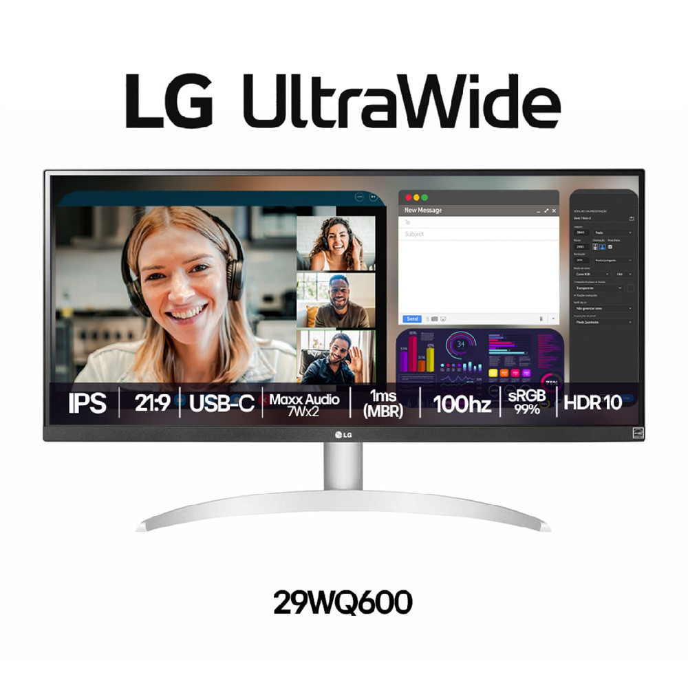 Monitor Gamer LG UltraWide 29" IPS FHD 100Hz 1ms Maxx Audio Inc FreeSync DP/HDMI/USB-C - 29WQ600