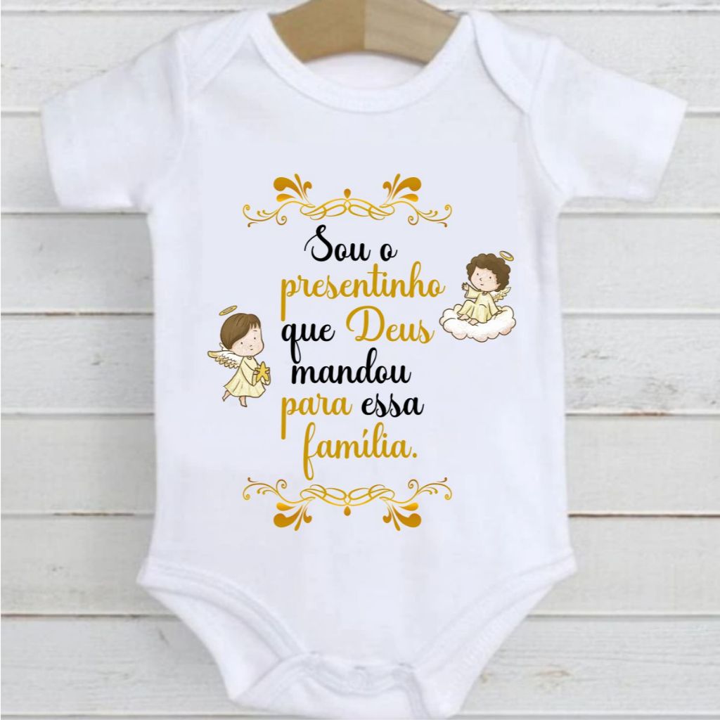 Body de Bebê roupa bebê unissex enxoval Frases Sou o Presentinho de Deus