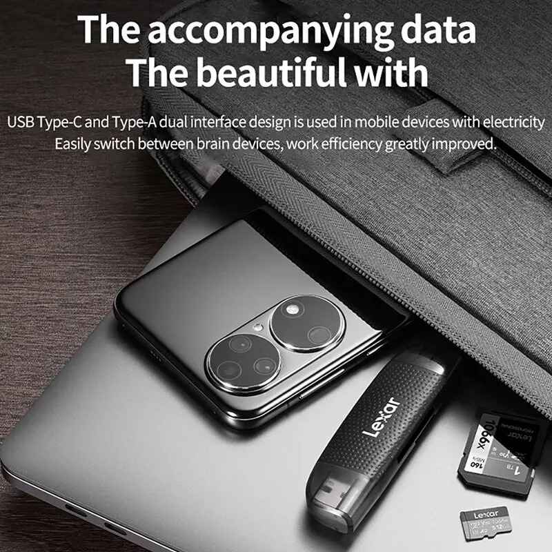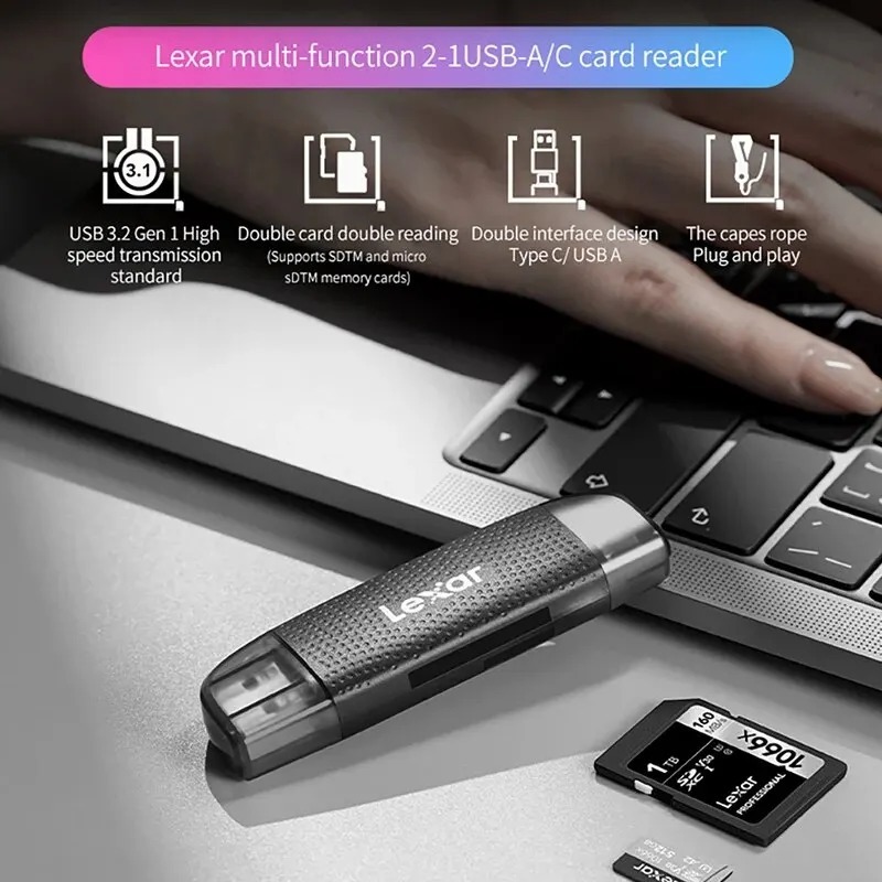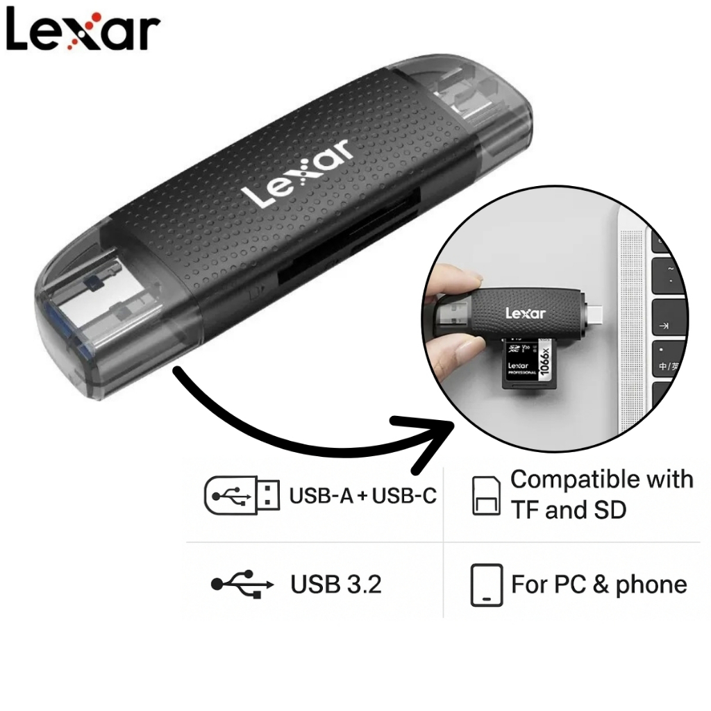 Leitor Adaptador de Cartão de Memória Lexar 2 em 1 USB 3.2 / Tipo C Interface dupla TF / SD Original