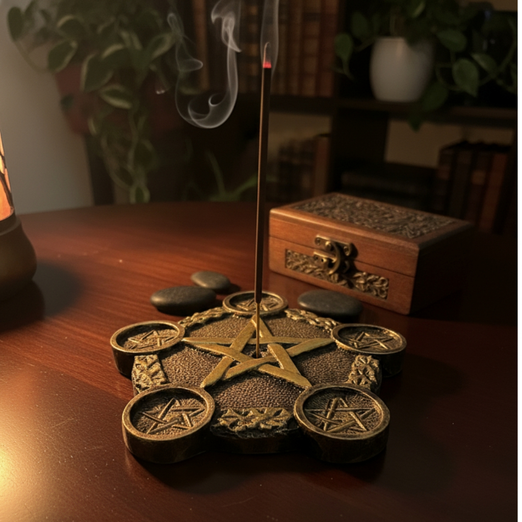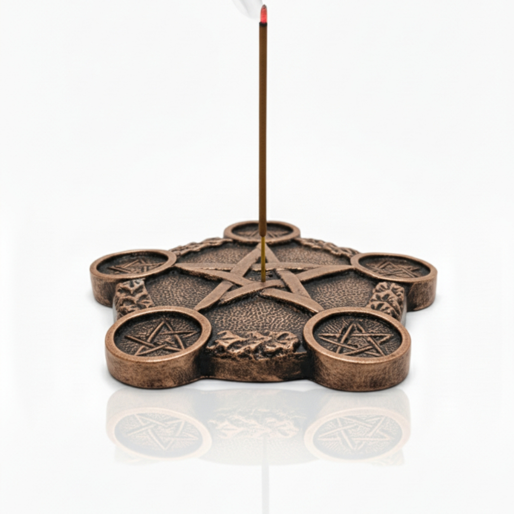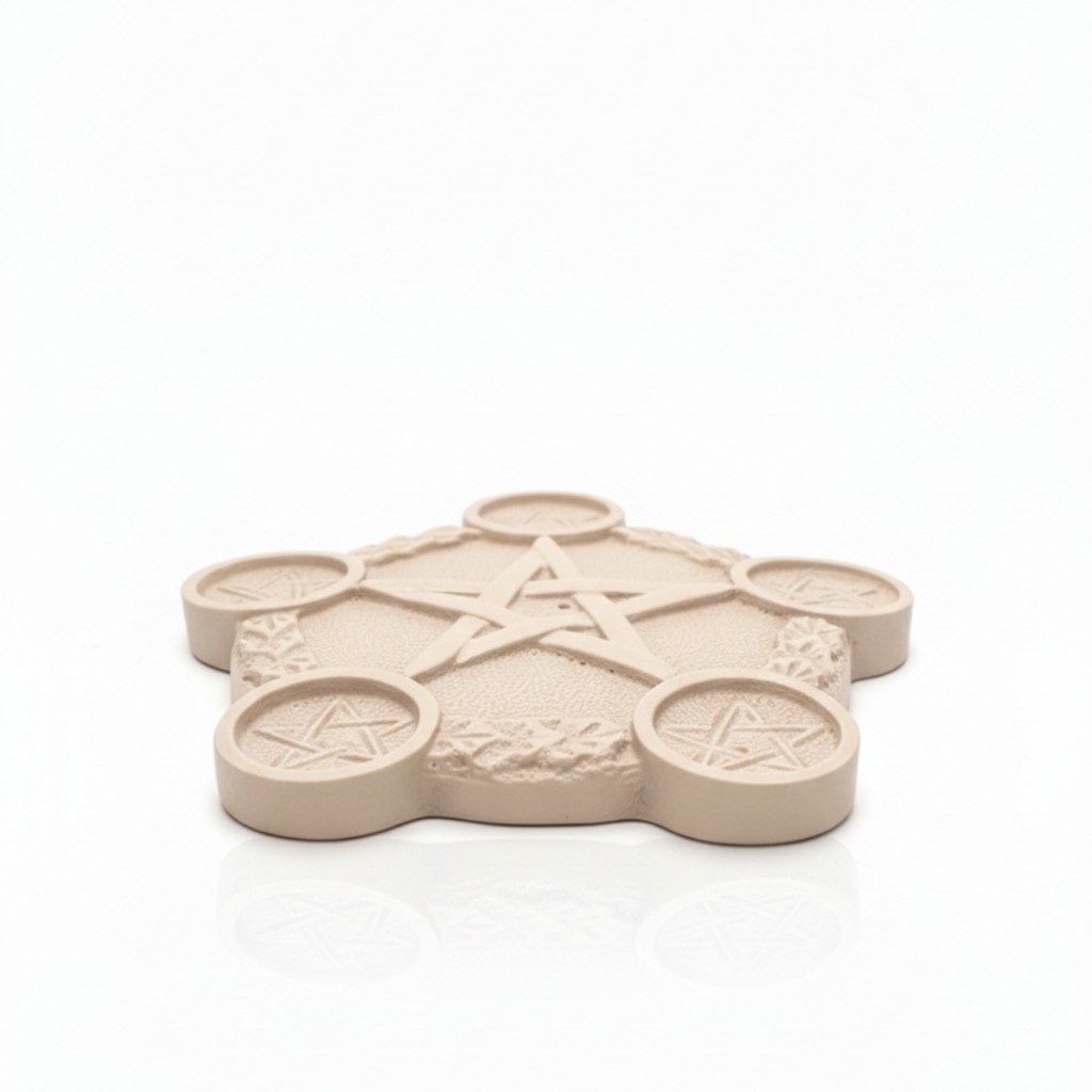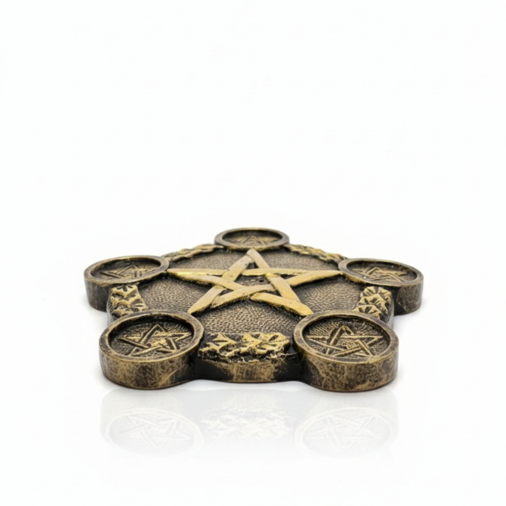 Incensário Prato Pentagrama 18cm - Resina e Porta-Velas Decoração Mística Zen