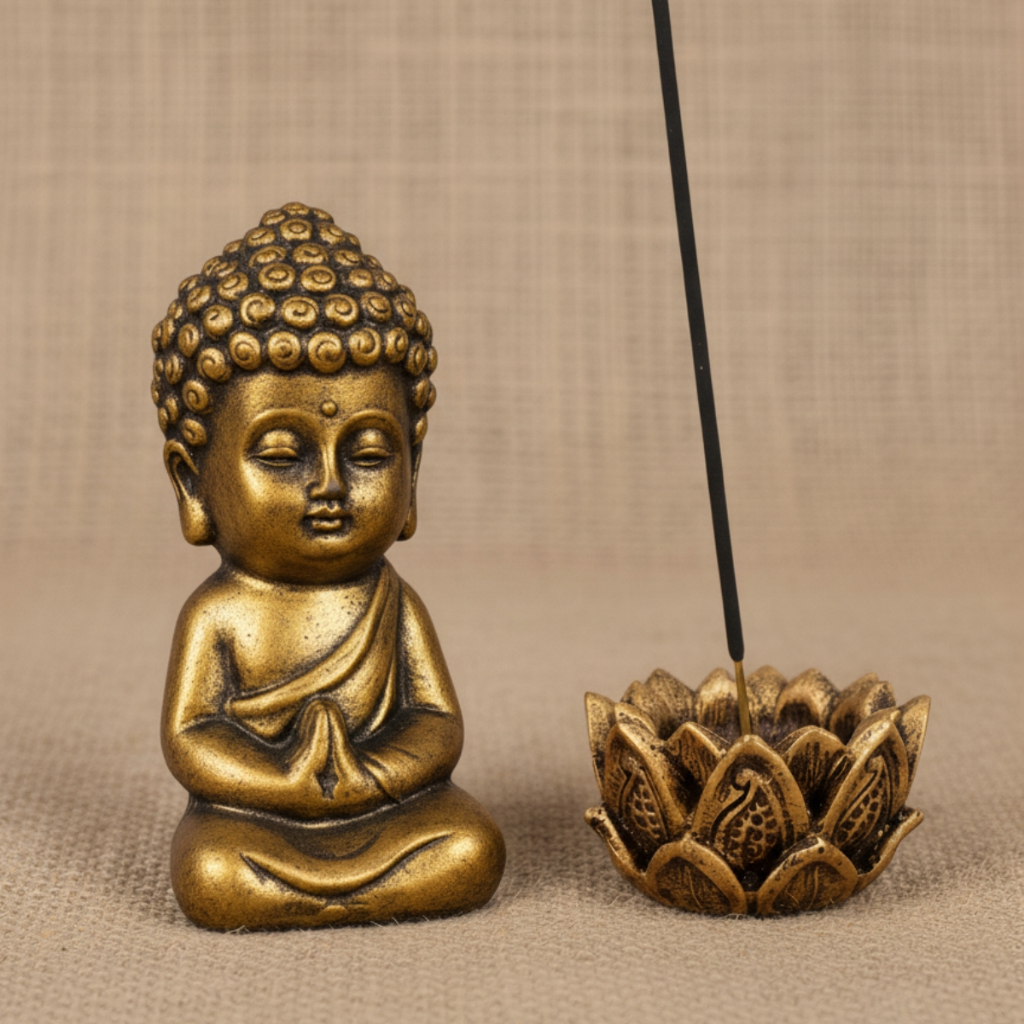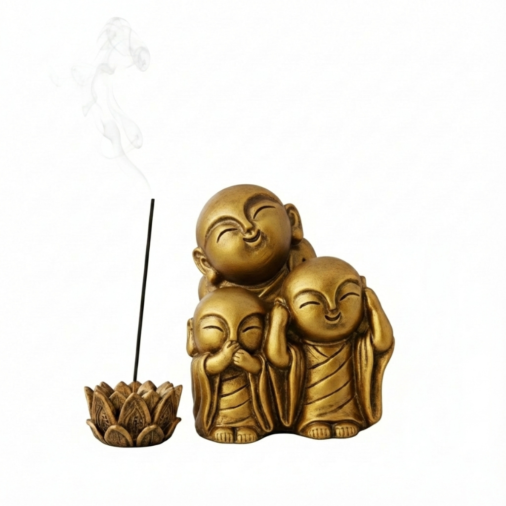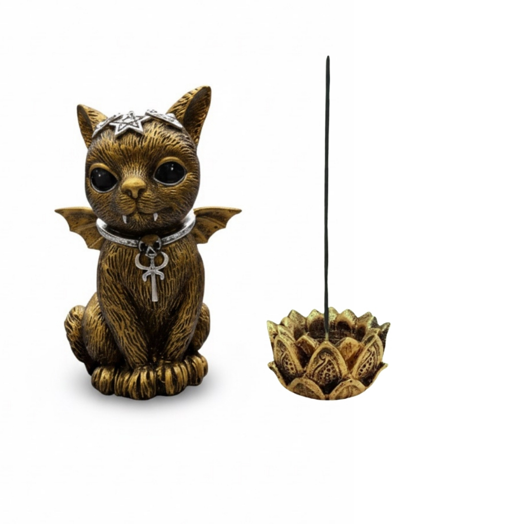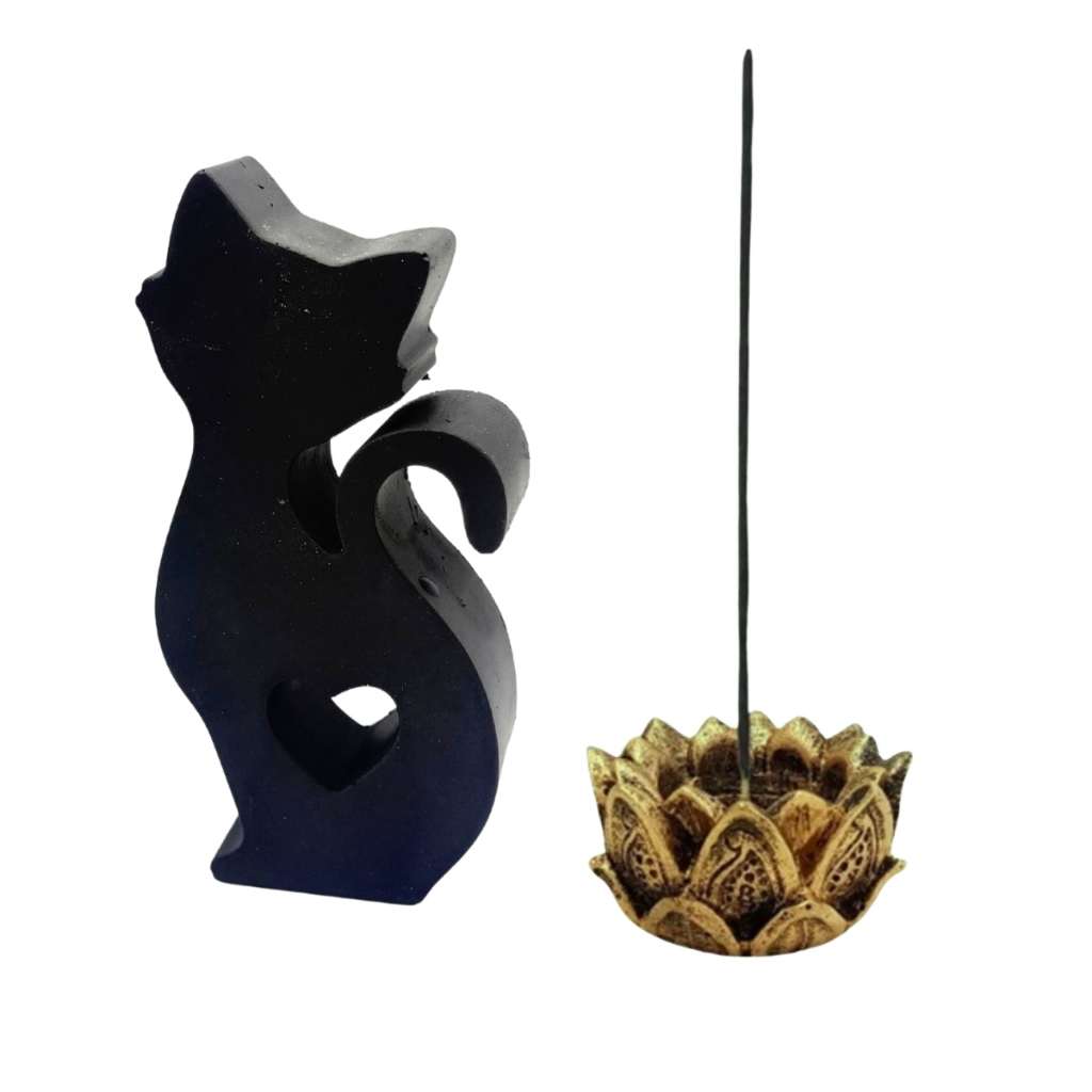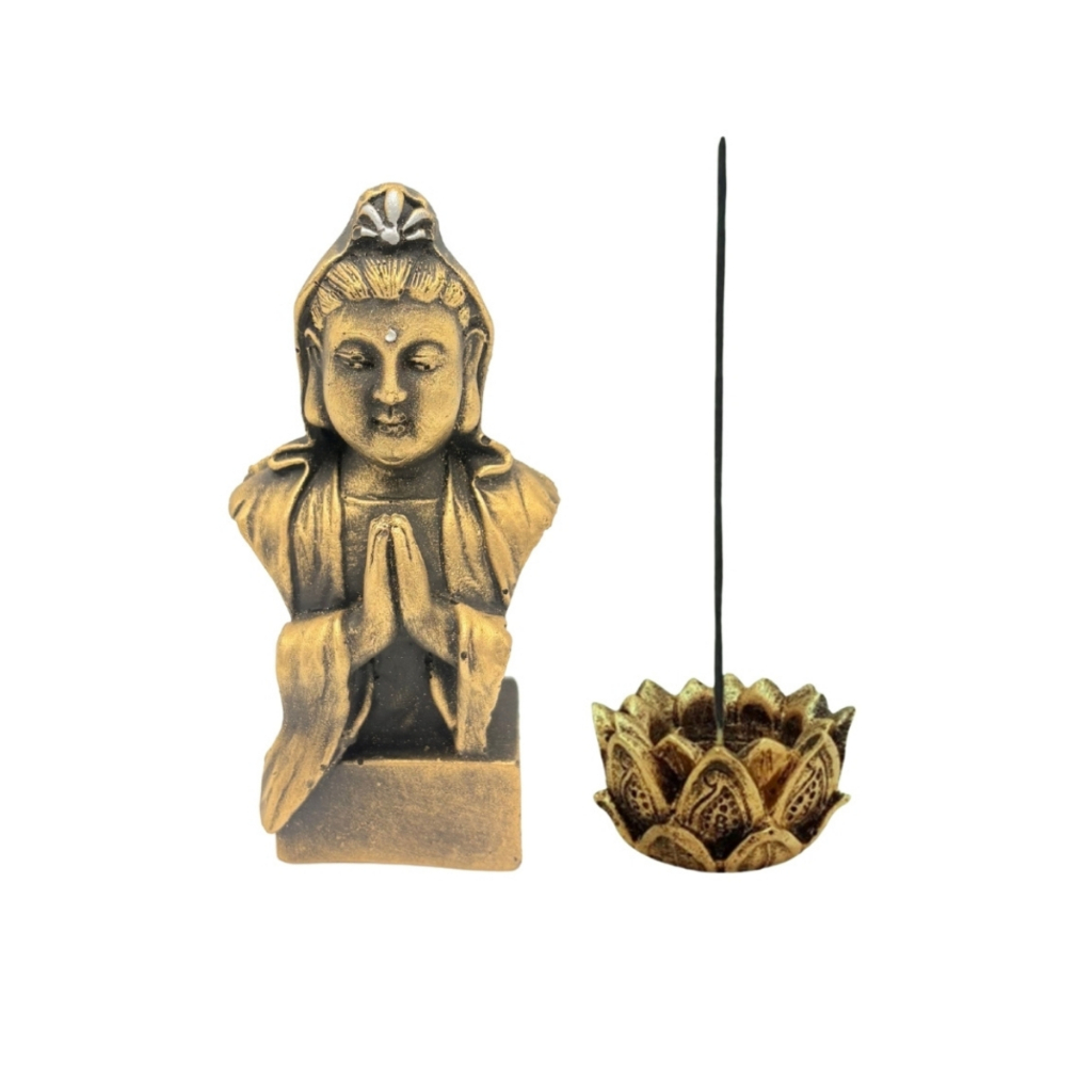 Kit Buda Criança Incensario Varreta Flor De Lótus Ganesha Tibeno Bastet