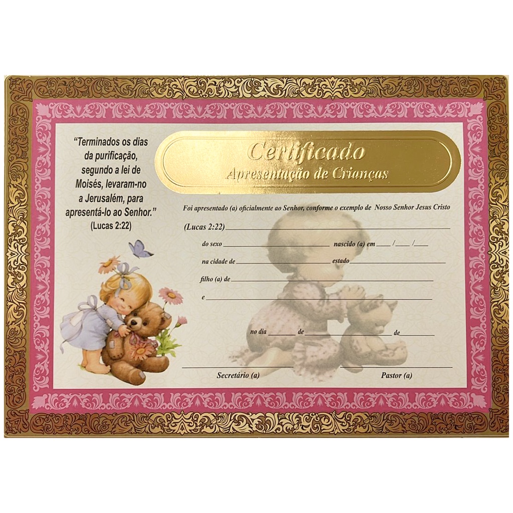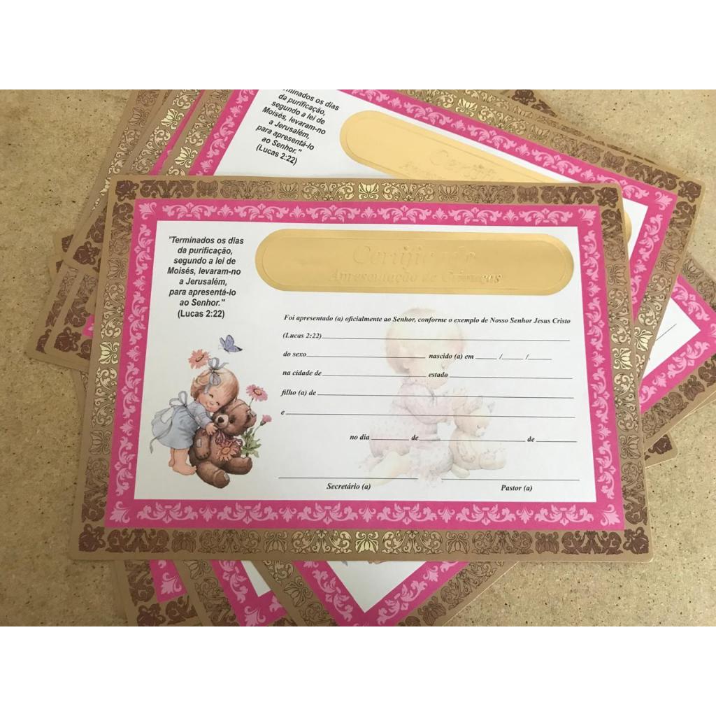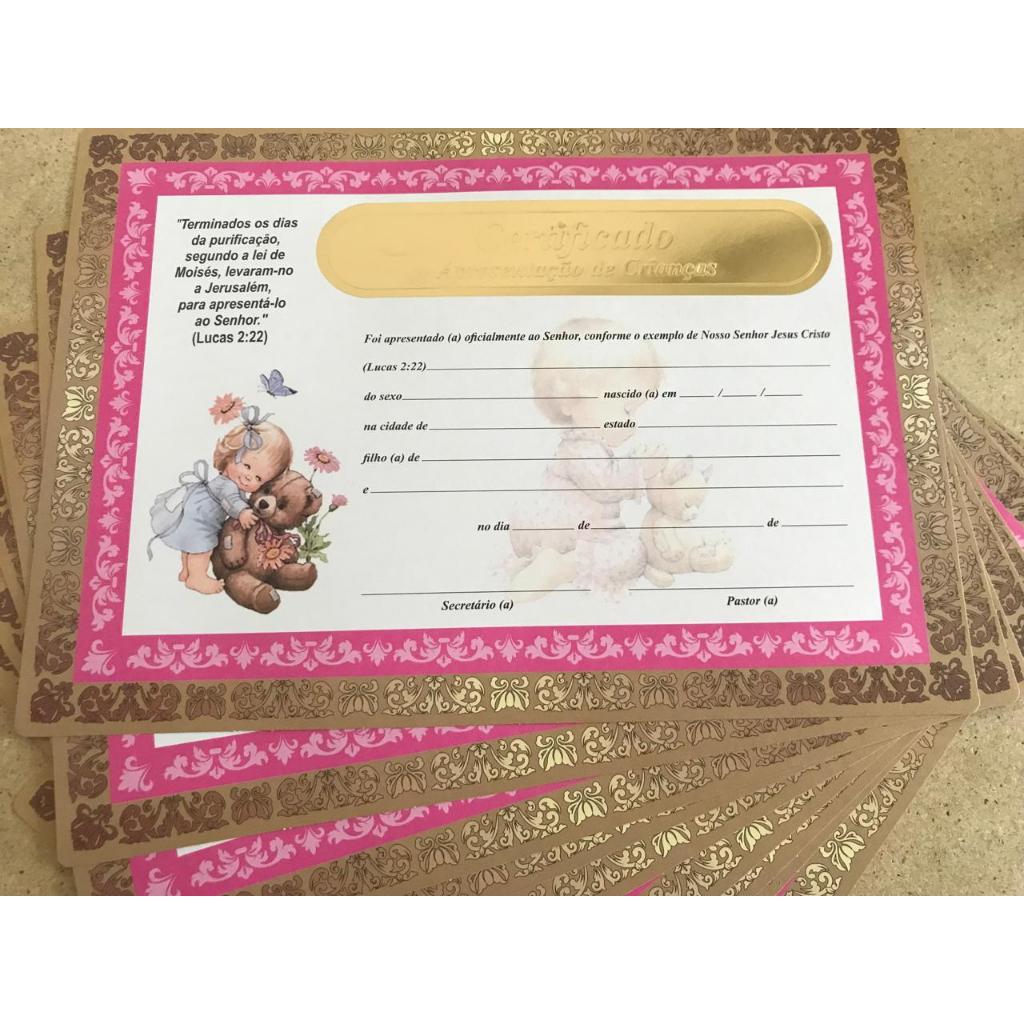 Combo 10 certificados de apresentação de criança modelo menina - promoção