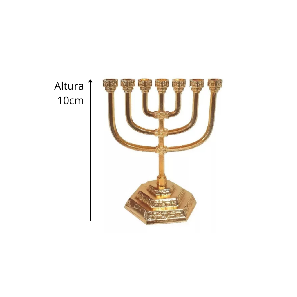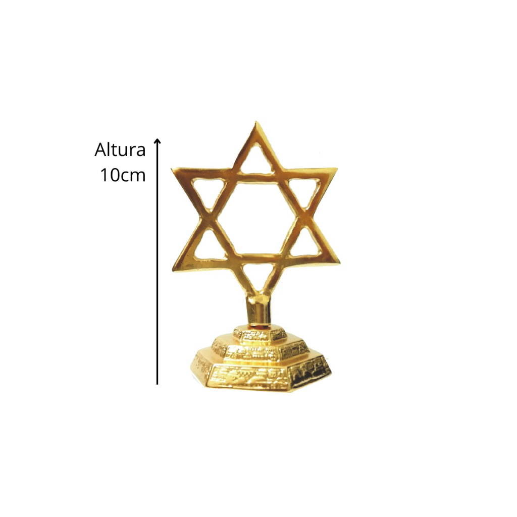 Kit arca da aliança dourada 13cm + Candelabro 10cm + Estrela Davi 10cm